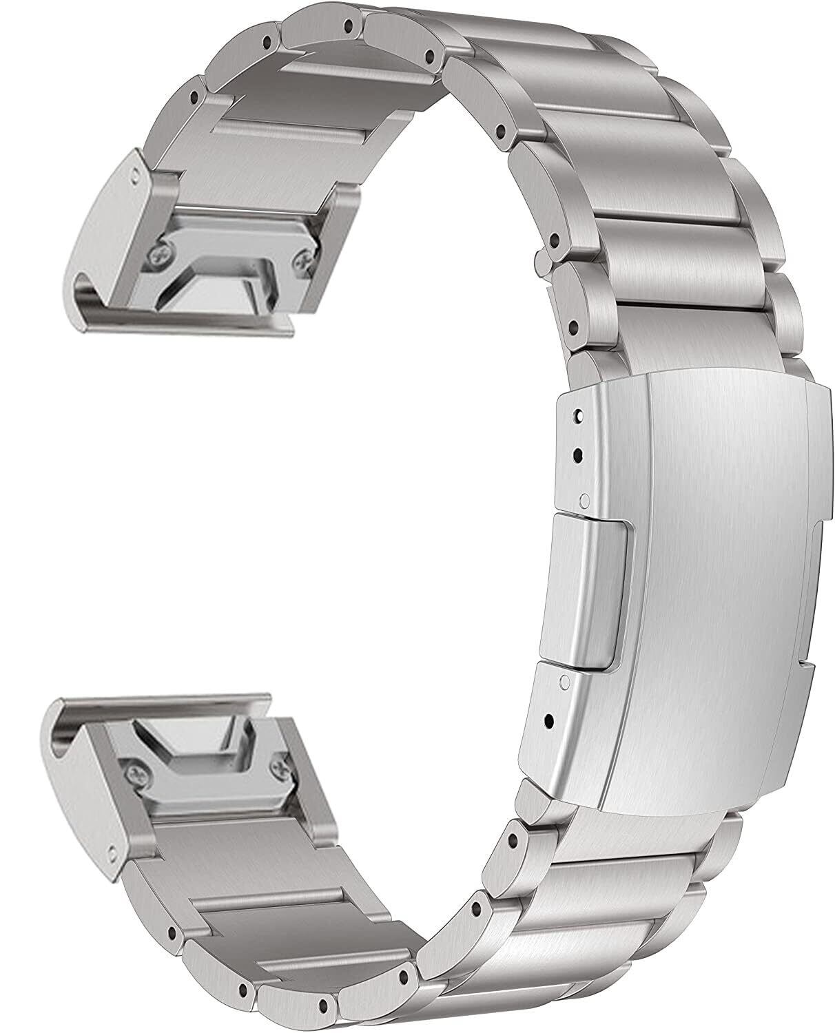 [MaKTech] チタンバンド ガーミン用 22mm クイックリリース メタルブレスレットストラップ トータスバックル付き Garmin Fenix 8 47mm/7/7 Pro/6/6 Pro/5/5 Plus, Instinct 2 スマートウォッチ用 (シルバー)