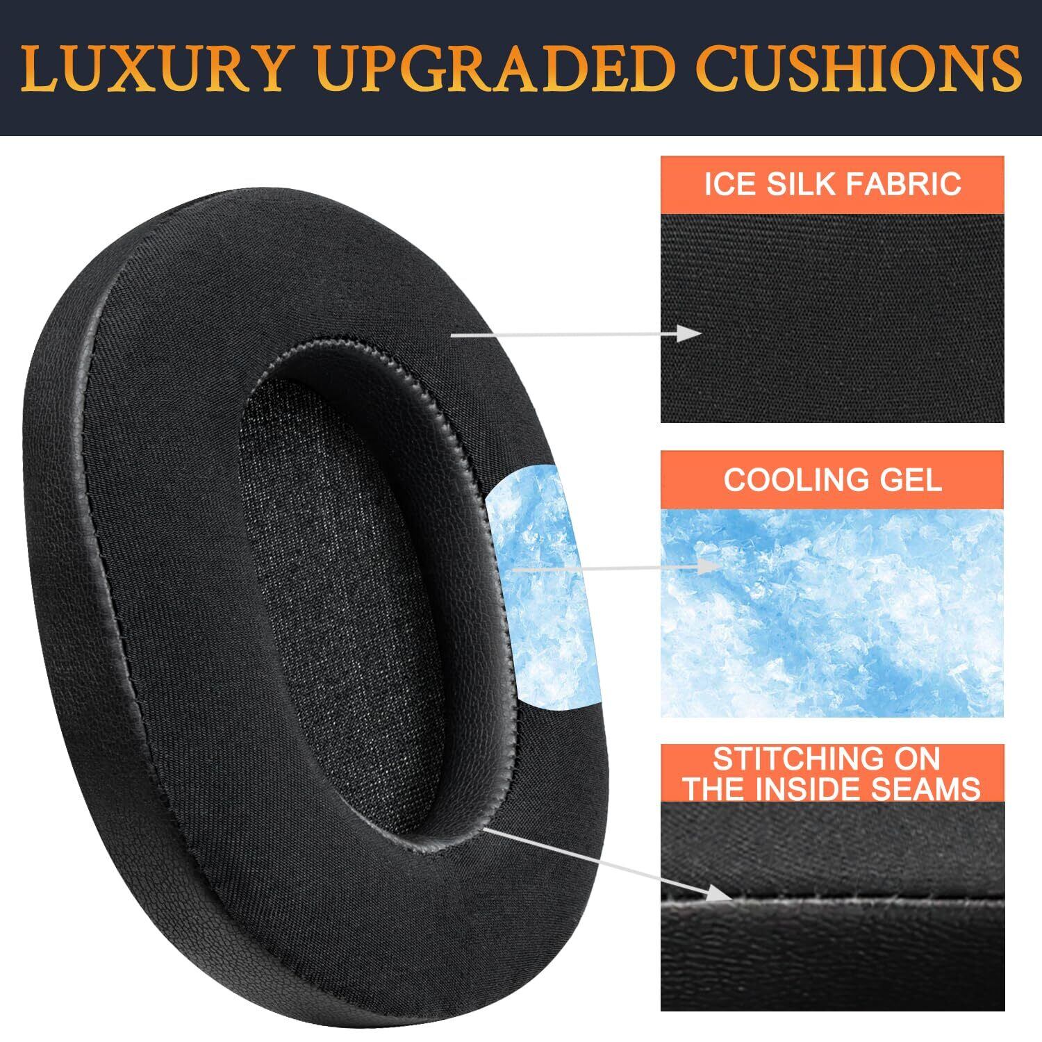 SOULWIT 冷却ジェル パッド イヤーパッド Sony WH-1000XM5 (WH1000XM5) ワイヤレスノイズキャンセリングヘッドホン 用 交換パッド 高密度フォーム ヘッドパッド 冷感 厚手パッド (ブラック)