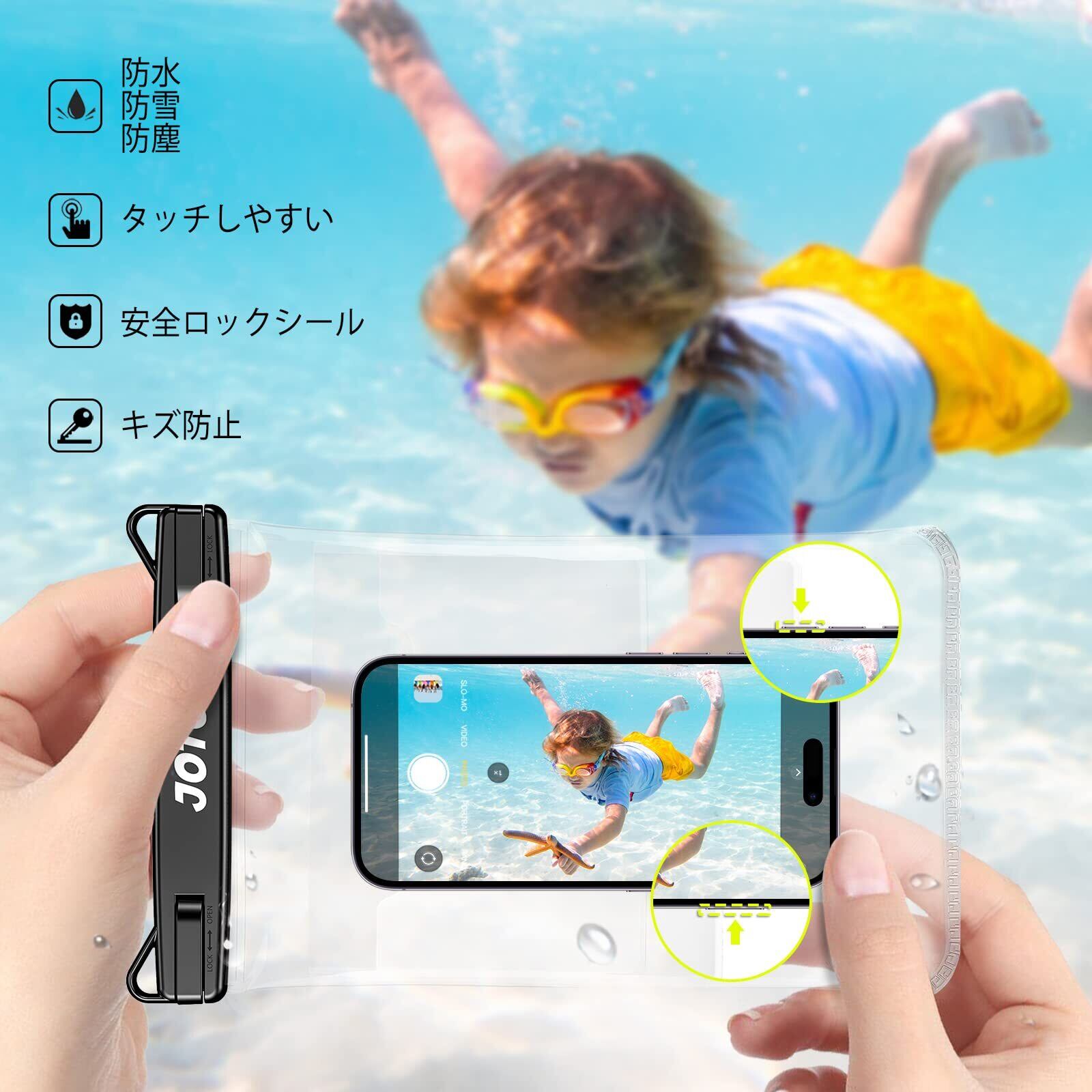 JOTO 防水ケース 2枚セット 7.5インチまでの設備対応 顔/指紋認証 お風呂 水泳 シュノーケリング 仕切り 水中写真 -ブラック