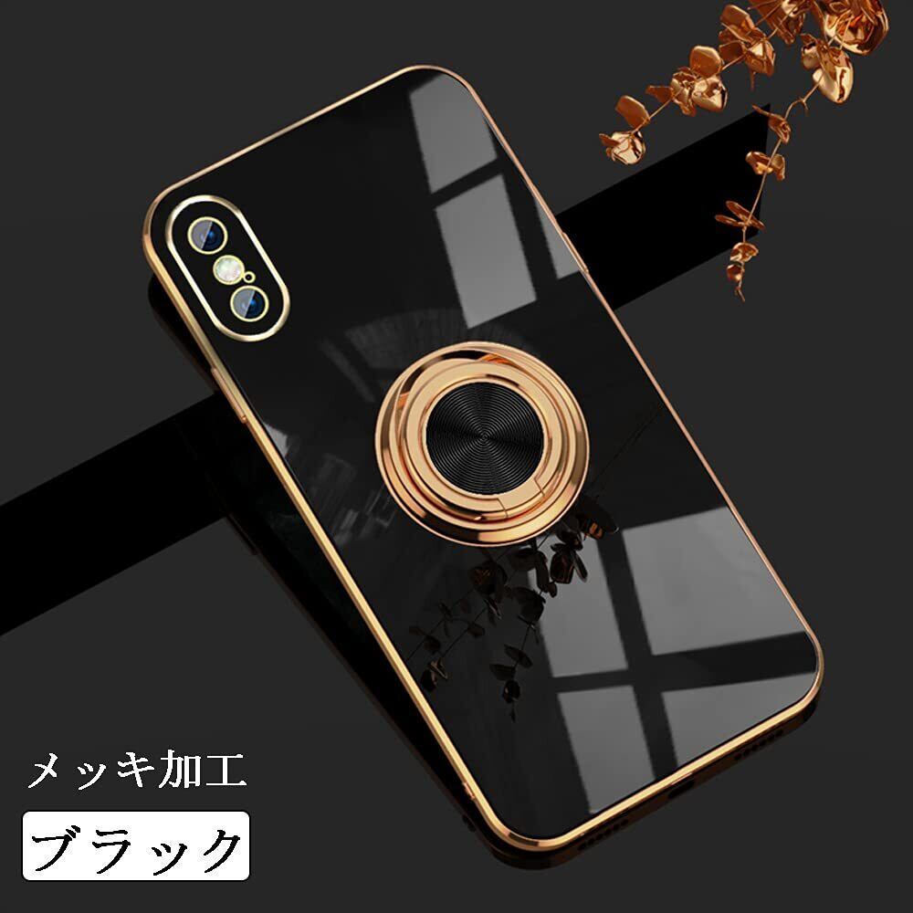 JOOBOY iPhone Xs 用 ケース iPhoneX 用 ケース リング付き メッキ加工 レンズ保護 tpu ソフト ストラップホール付き 耐衝撃 スリム おしゃれ スマホケース 携帯カバー アイフォンXs 用 ケース (iPhone X/XS, ブラック)