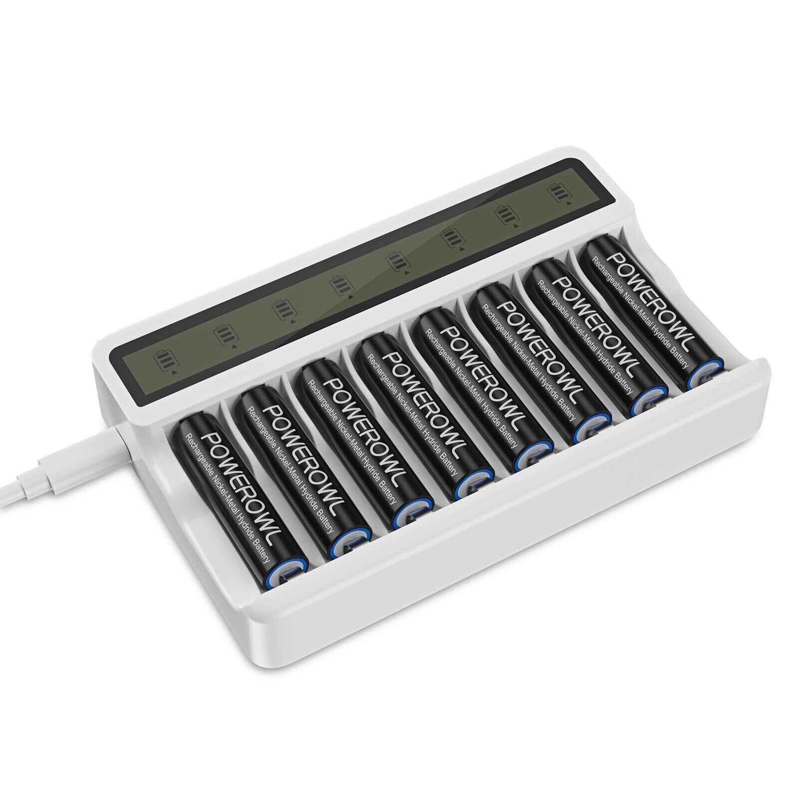 POWEROWL 2800mAh 充電式 単3 電池、スマート 8 ベイ 電池 チャージャー付き、低自己放電 ニッケル水素ダブル 単3 電池、8 個入り