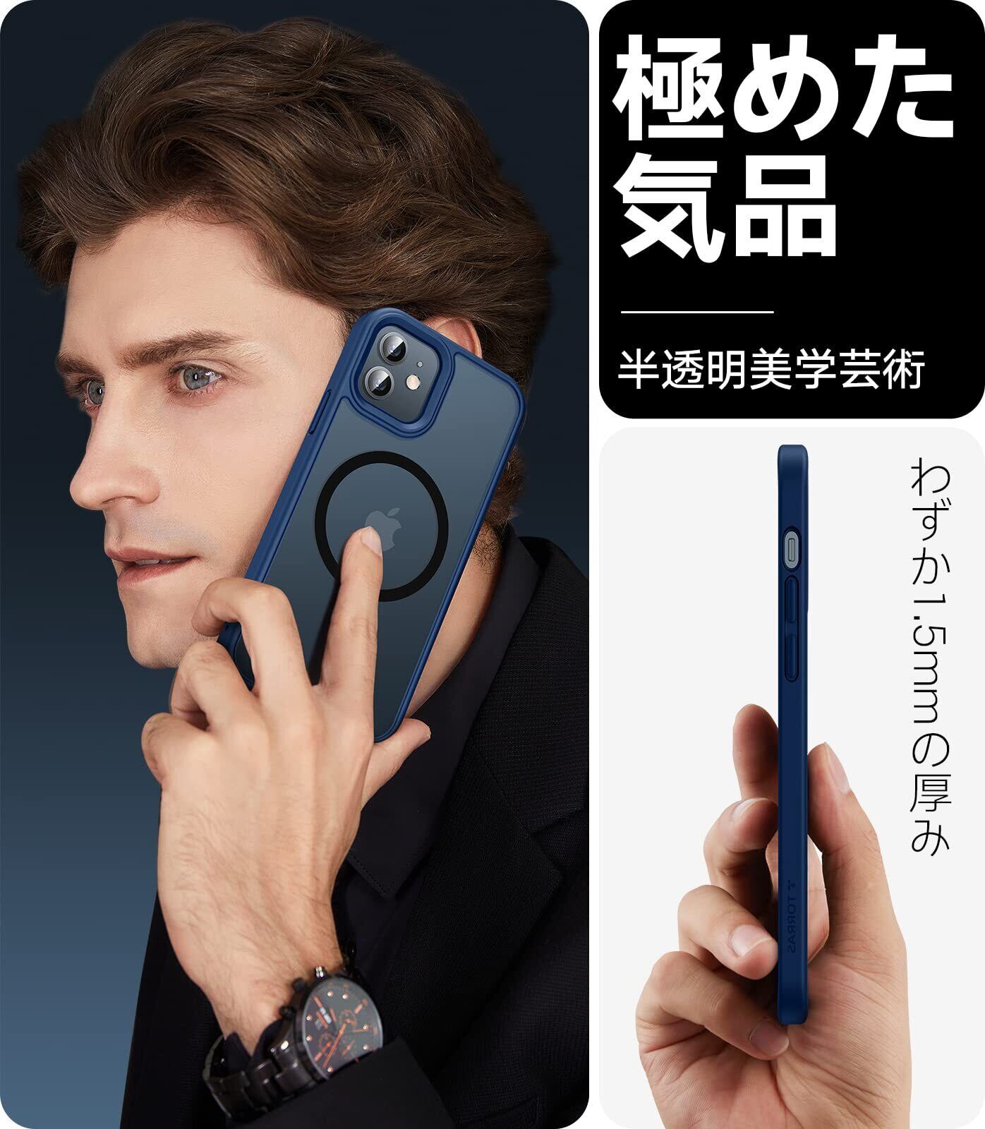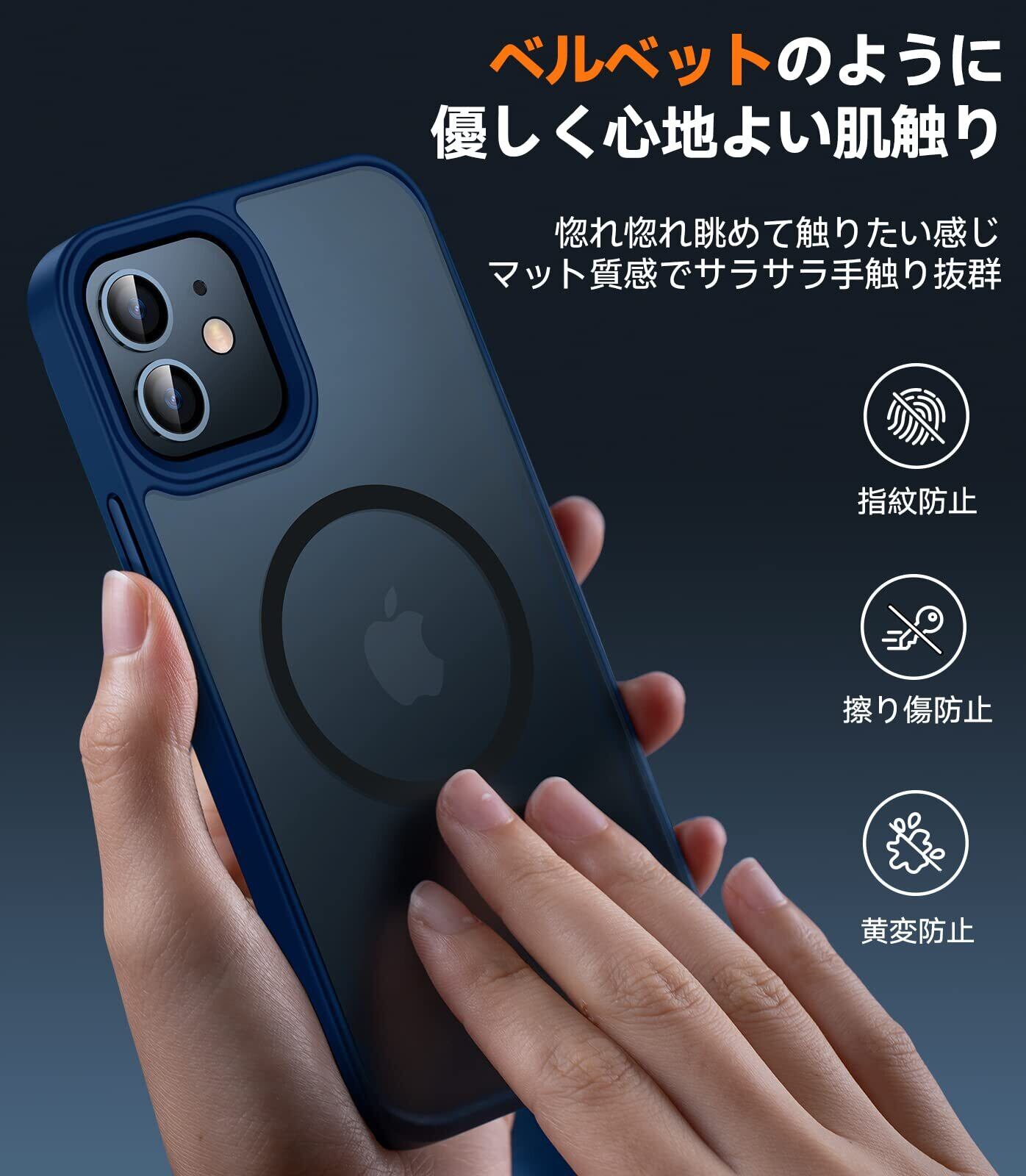 【米軍規格・MagSafe対応】TORRAS iPhone 12/12Pro 用 ケース 半透明 マグネット搭載 耐衝撃 マット感 黄ばみなし ストラップホール付き マグセーフ対応 ワイアレス充電対応 Guardian-Mag ブルー