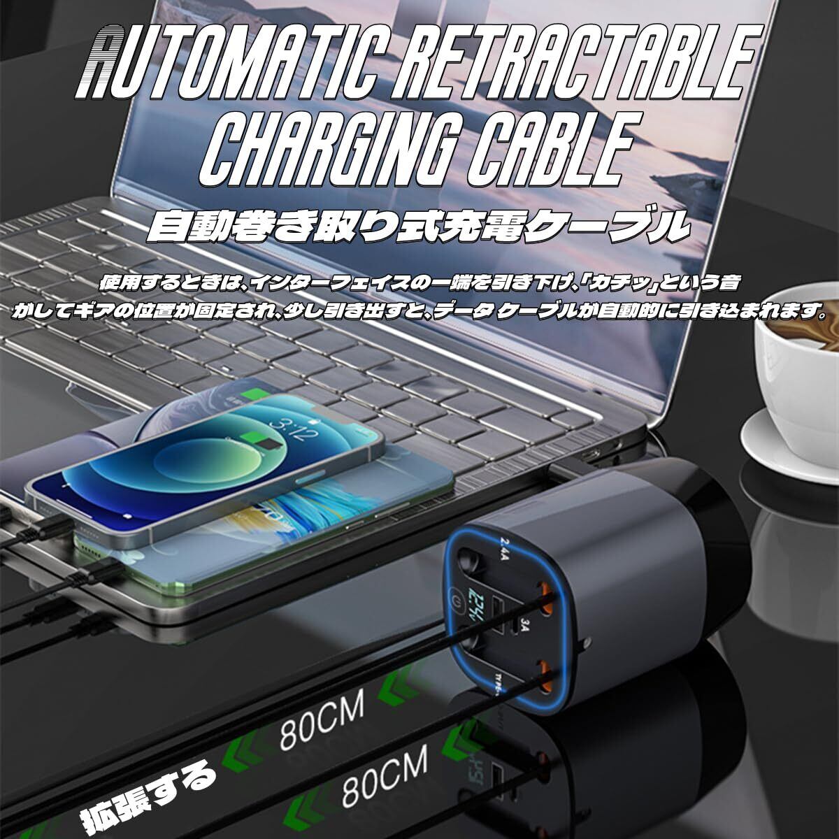 ZUKIDA 車の充電器 急速充電 シガーライタースプリッター 80CM延長ケーブル 電圧検出 LEDデジタル表示機能 12V/24V 100Wシガーライターアダプター 2.4A USB & TYPE-C車載充電器 車のカップホルダー(Black)