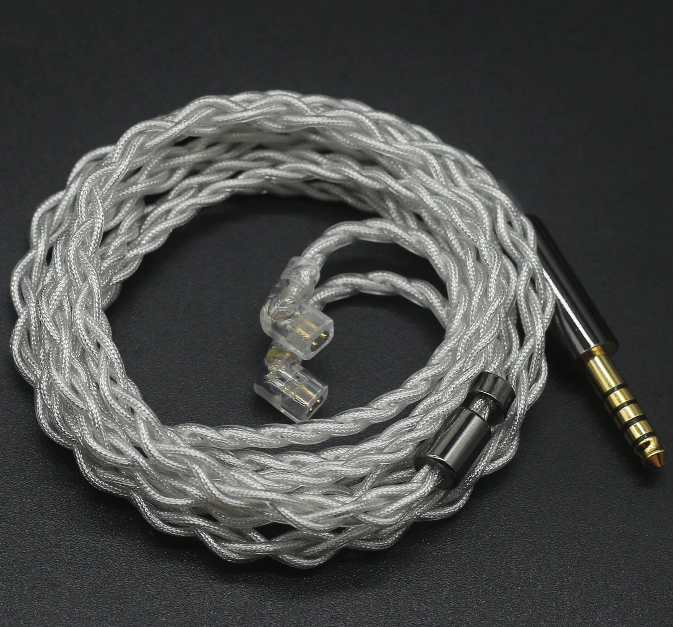 【優良線材使い】ドイツ輸入機械編み単結晶銅銀メッキ線材で上がりました、線路ははっきり見えます、クリアでレンジの広い、バランスに優れる4芯高品質リケーブルです。