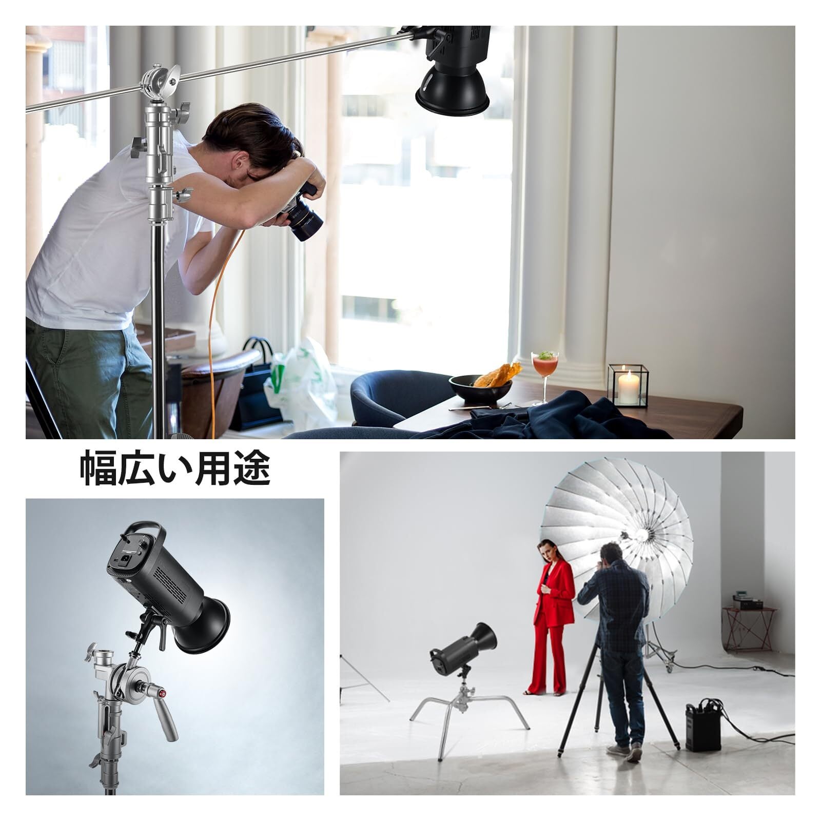 【幅広い用途】1-1/8"ジュニアレシーバーを備えたCスタンド、ヘビーデューティーライトスタンド、TV クランプ、タートルベース、および 5/8"ベビーレシーバーを備えたスタジオモノライトやLED ビデオライトに対応します。