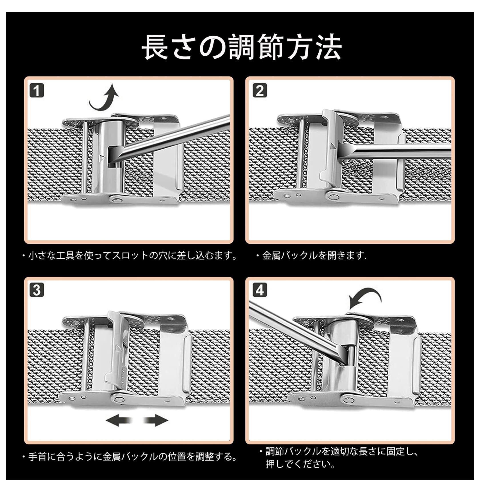 【優れた素材】ファッション性、高貴さ、耐久性、エレガンスを兼ね備えたプレミアムステンレススチールメッシュで作られています。通気性が良くなっるメッシュデザイン、皮膚の炎症を防ぎます。快適に着用できます。鋭いエッジがまったくなく、液体のように肌に触れます。