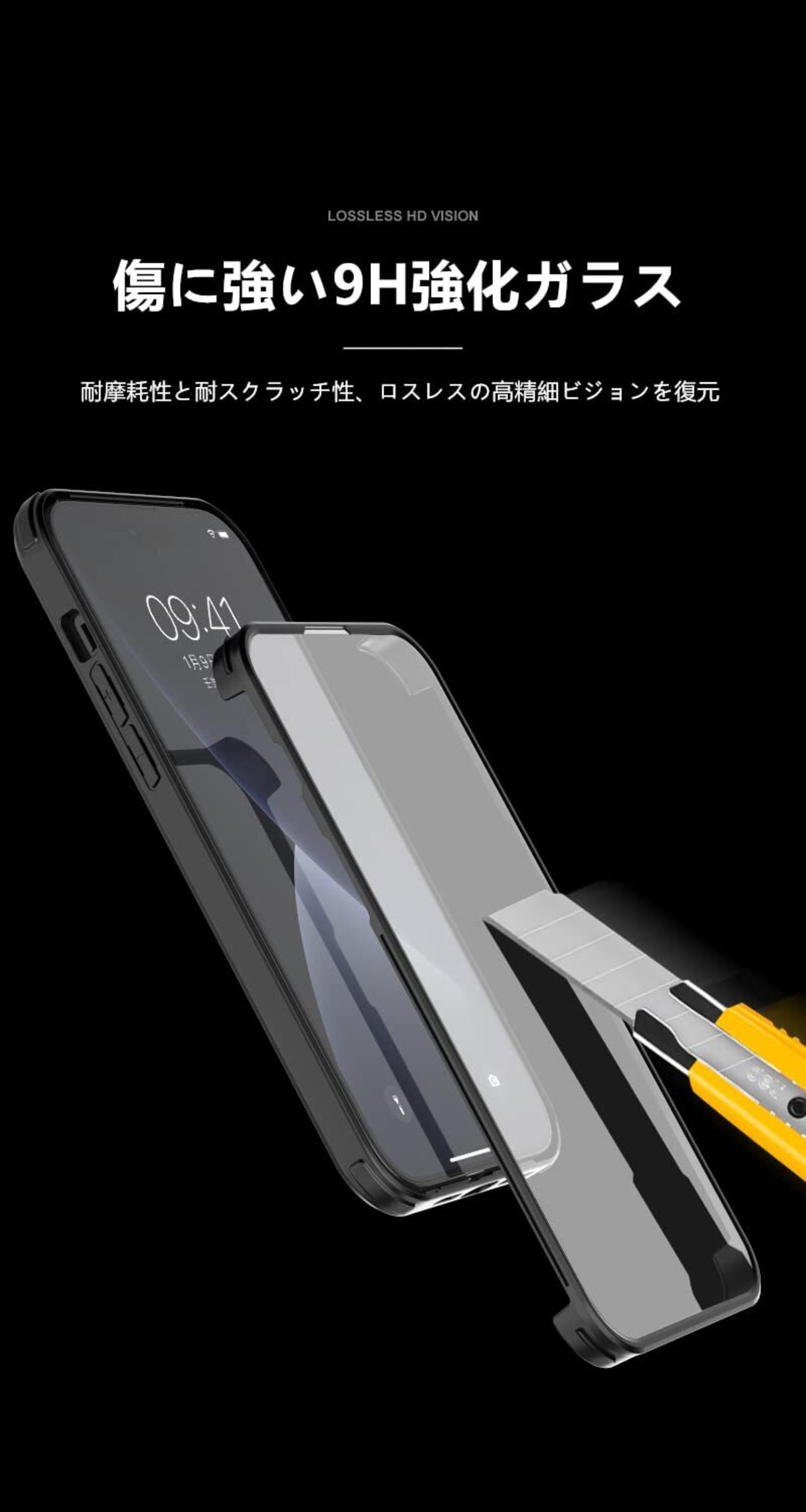【高タッチ感度】:今までに無い100%画面タッチ感度で、スムーズなタッチスクリーン体験をお楽しみいただけます。また、前面カバーと背面カバーは一体化デザインであり、表面9H硬度ガラスと耐衝撃性を兼ね備えたソフトTPU素材バンパーで作成したの全面保護ケースになります。(※注意:他の液晶フィルムが貼られている場合は、必ずを剥がしてから装着してください。)