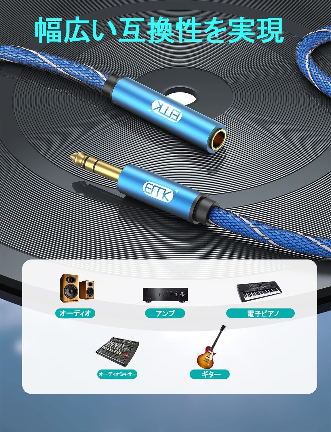 【簡単接続】EMK 6.35mm延長ケーブルは、標準的な6.35mm TRSステレオジャックを持つオーディオ機器を接続するための6.35mmオス-6.35mmメス変換ケーブルです。