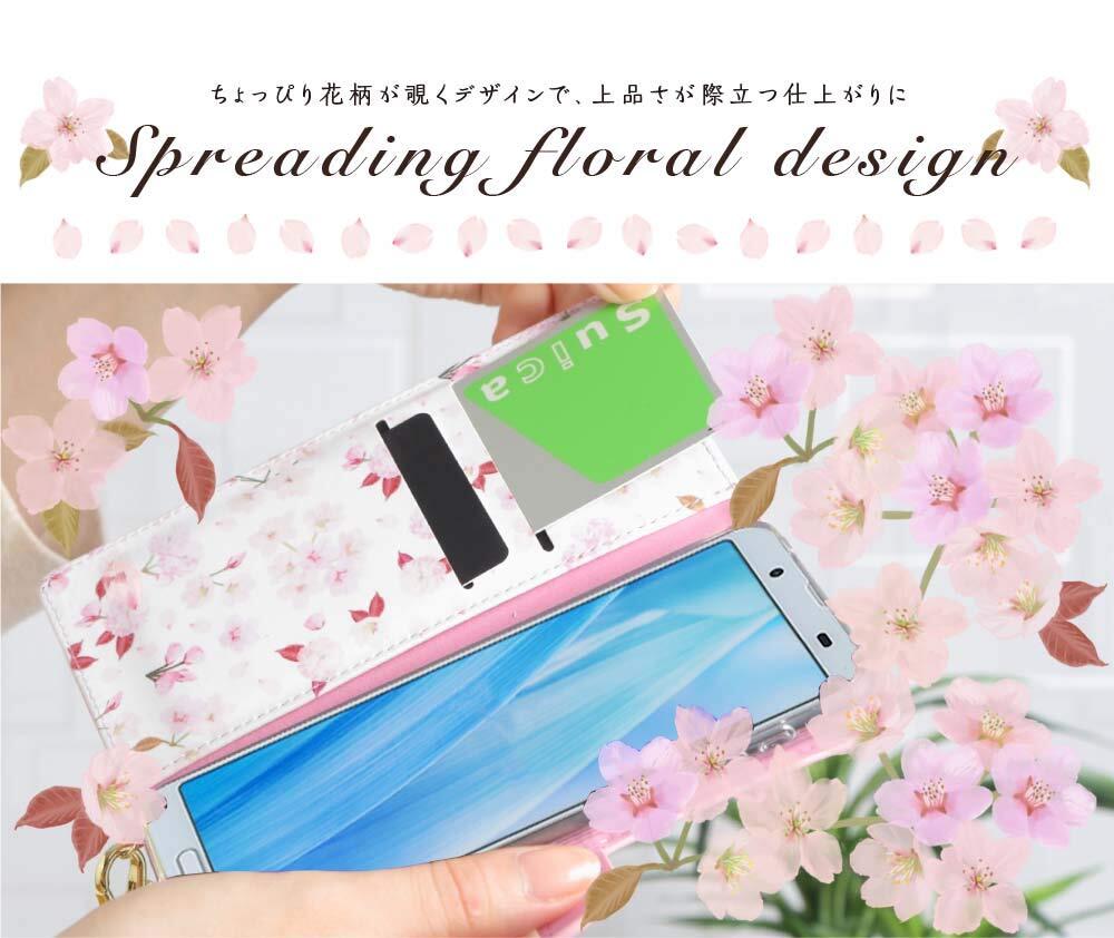 AQUOS sense8 ケース 手帳型 花柄ケース AQUOSsense8 手帳 カバー スマホケース 薄型 保護 耐衝撃 SH-54D SH54D SHG11 SH-M26 アクオス センス8 携帯ケース ドコモ au UQmobile 楽天モバイル ホワイト A992AS8WH