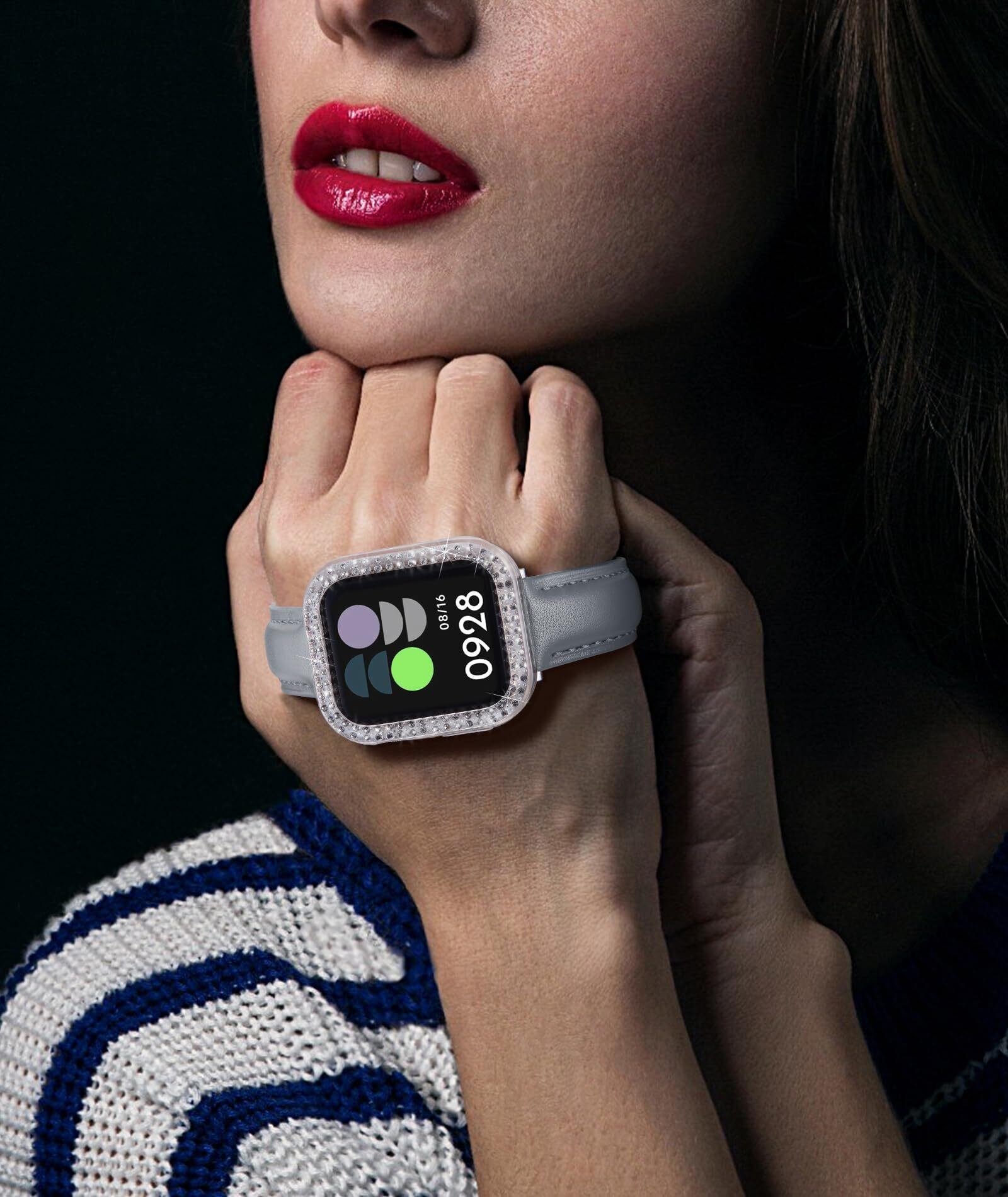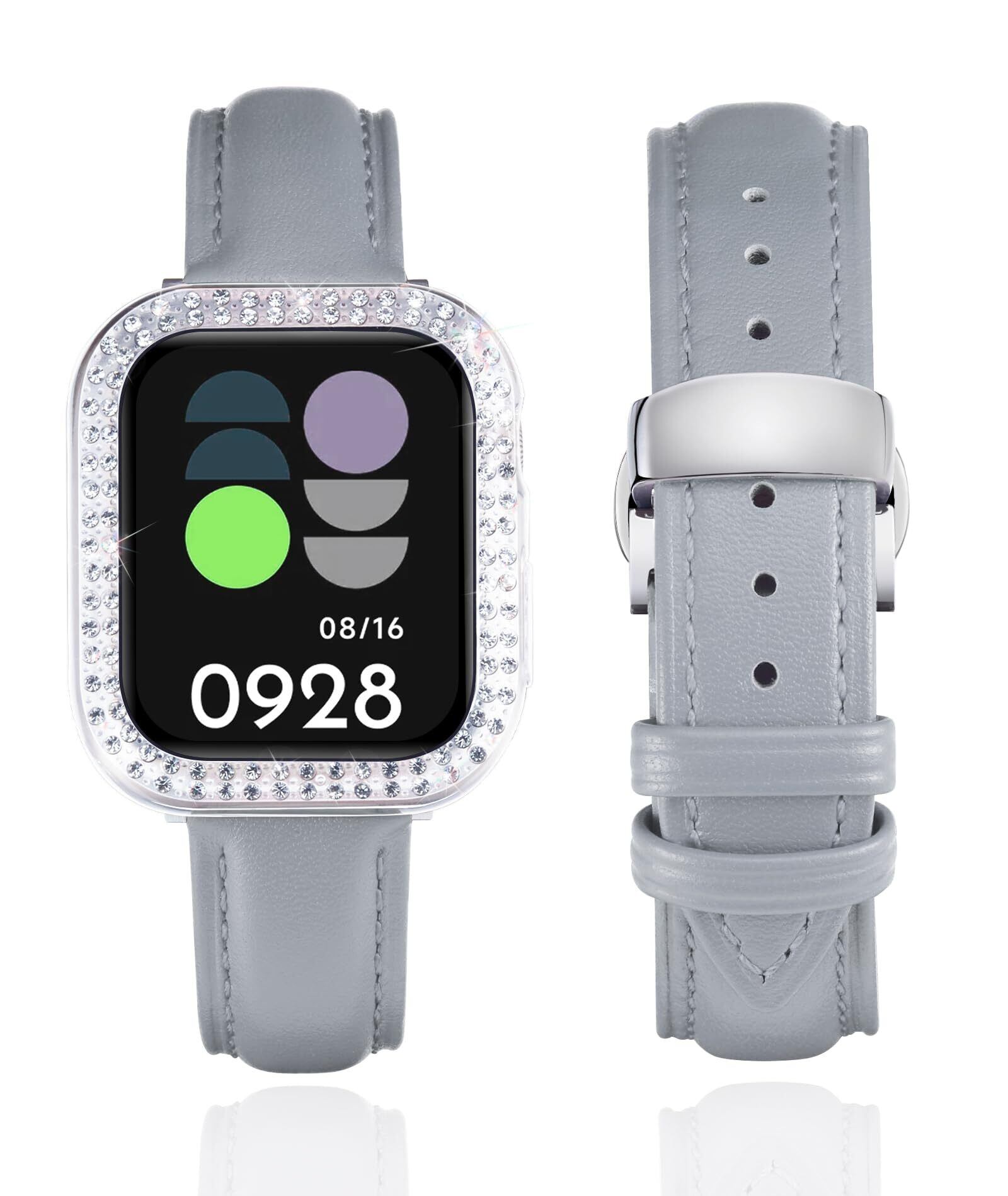 コンパチブル Apple Watch バンド 40mm 41mm 44mm 45mm コンパチブル アップルウォッチバンド レザー 革ベルトキラキラダイヤモンド保護ケースー付きレディース コンパチブル iWatch Series 9/8/7/SE2/SE/6/5/4(41mm,グレー/トランスペアレント)