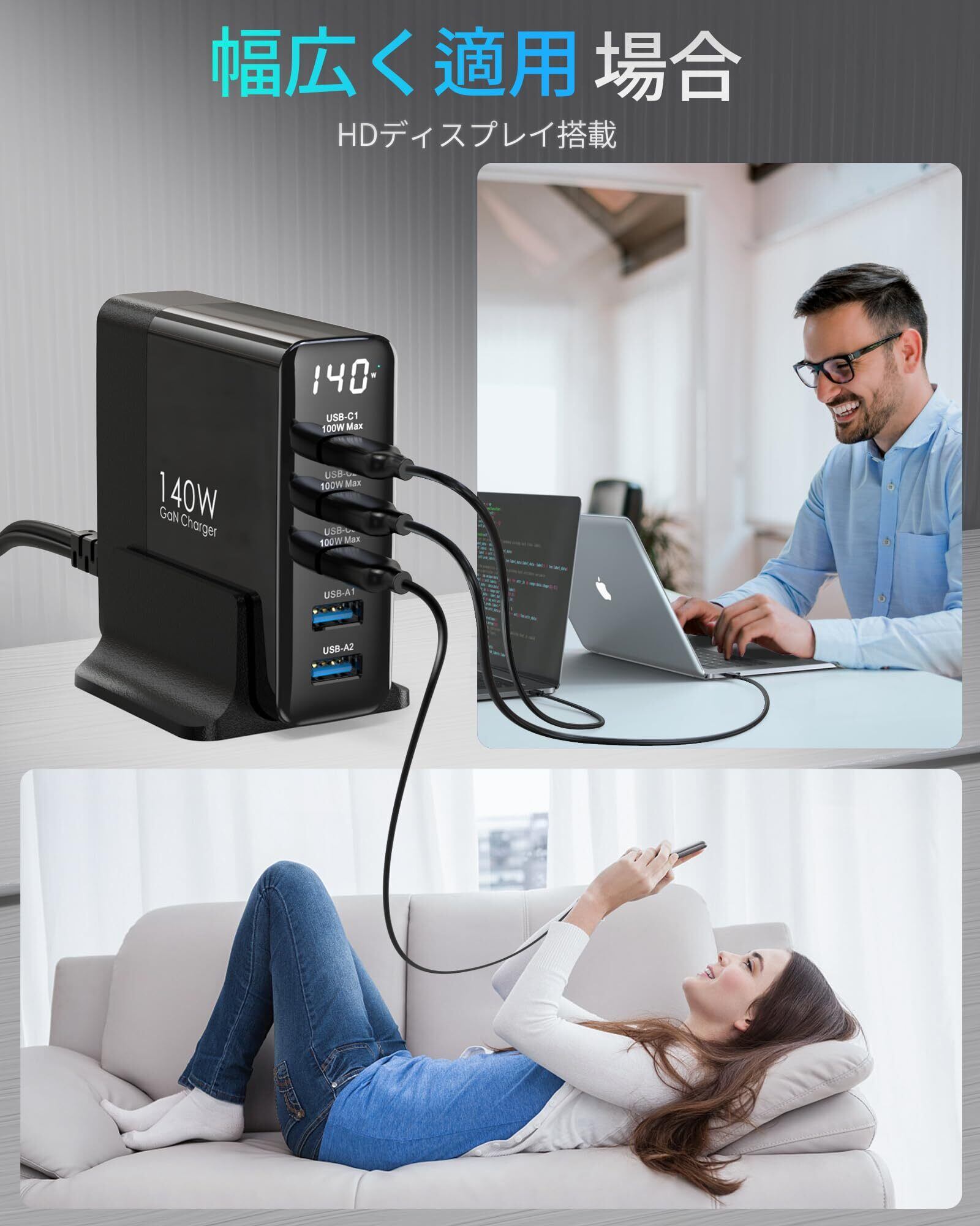 TOPADRE 140W 急速充電器 PD タイプ c 充電器【100W Max*USB-C*3+USB-A*2+ディスプレイ搭載+PSE認証】5ポート Type-c充 電器 MacBook M4 M3 /ipad Pro/iPhone 16/15/14/13 Pro Max/Samsung Galaxy Note各種デバイス対応 GaNIII(窒化ガリウム) 1.5mの電源ケーブル付き