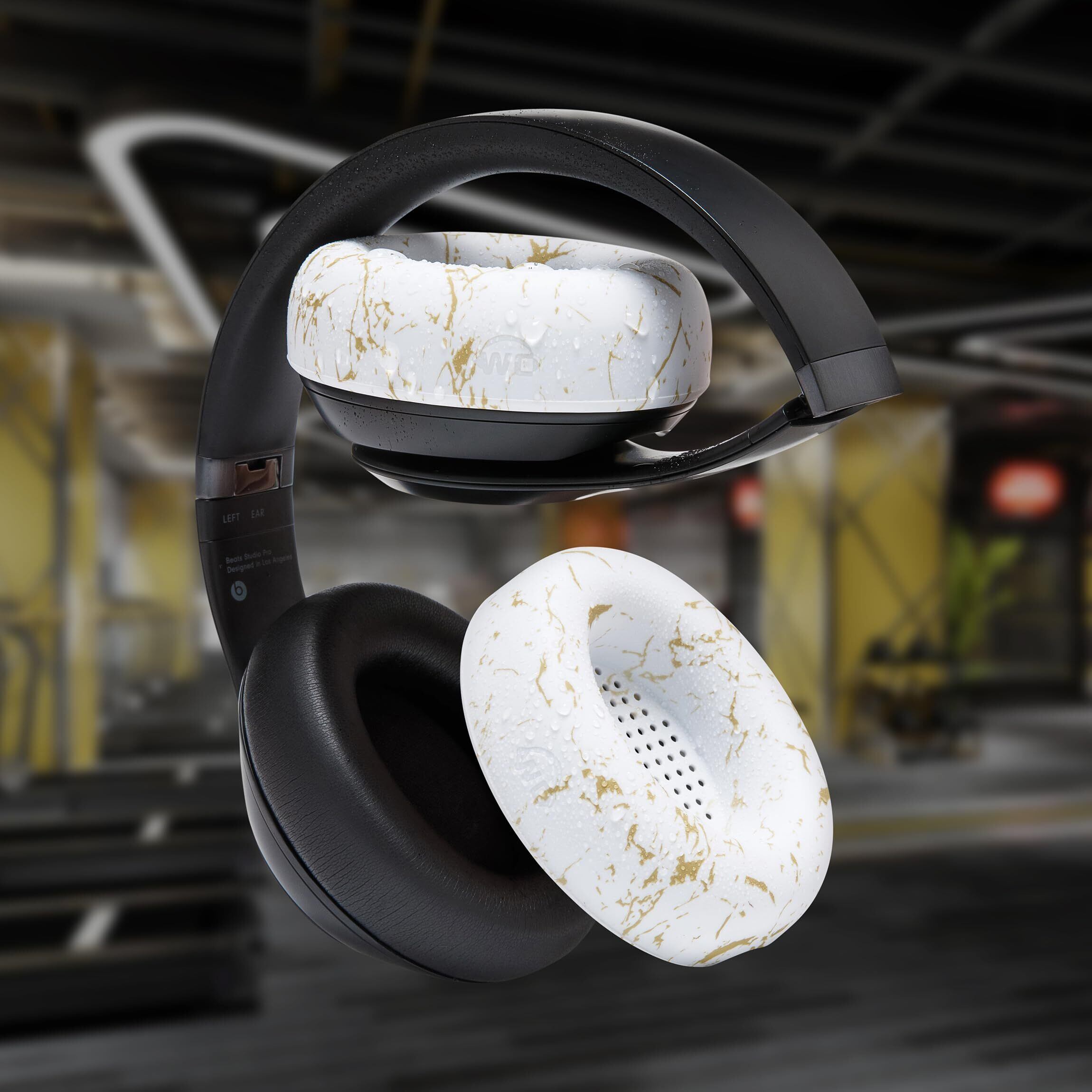 WC SweatZ Studio Pro - Beats Studio Pro 用保護シリコン イヤーパッド カバー Wicked Cushions 製 |防汗&簡単に洗える | ゴールドマーブル