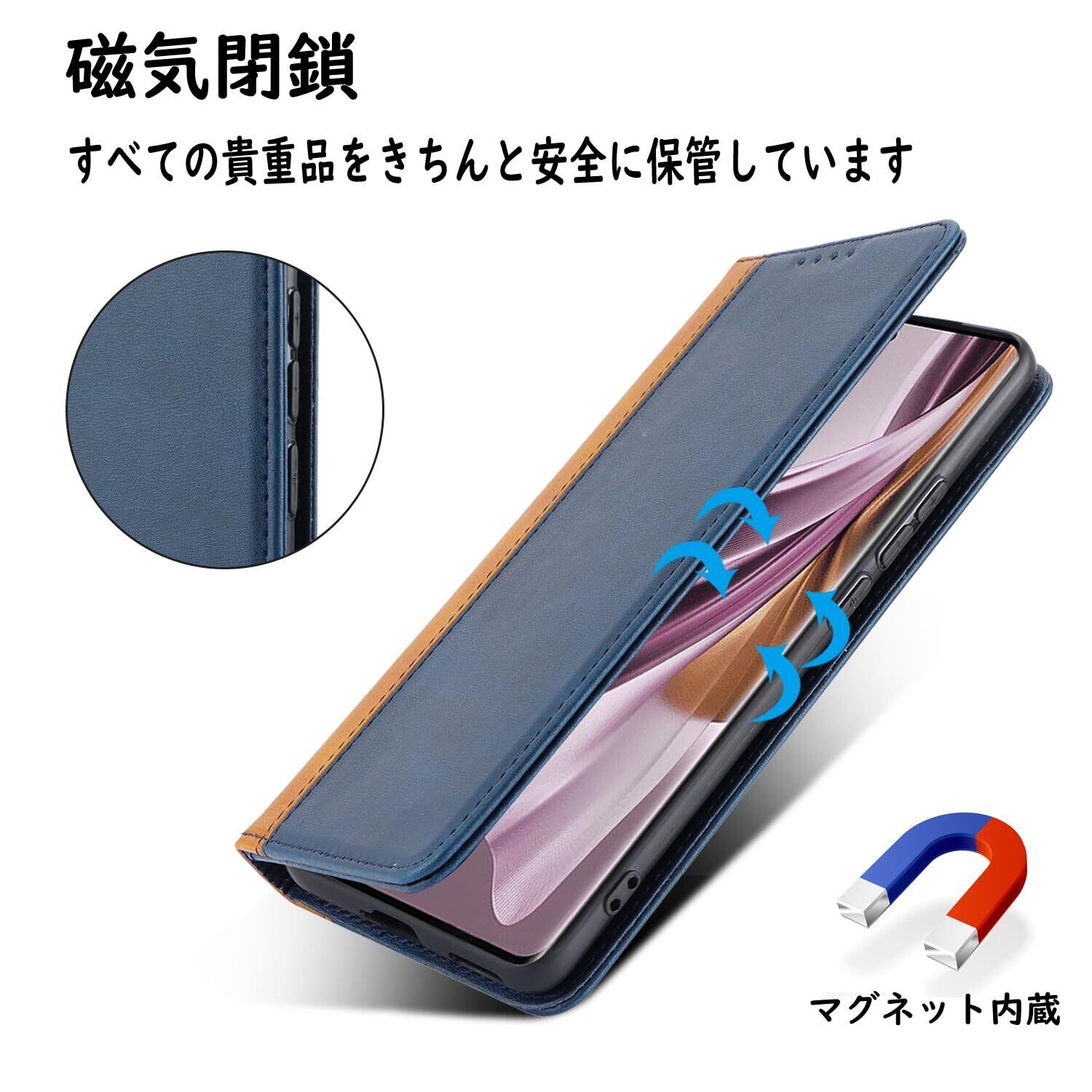 【収納機能】OPPO Reno 10 Pro 5Gケース内側には三つのカード入れとフリーポケットがつき、カード類や紙幣、名刺などが収納できます。カードスロットに2枚のカードを入れると、内蔵マグネットの機能を最大限に発揮し、カードが消磁されるのを防ぐことができます。横置きスタンド機能が付き、横向いて斜めに立てて、自由に角度を調整して、お好みの角度で動画鑑賞や読書などを楽しめます。長時間での新幹線、飛行機の中での暇つぶしに最適です。