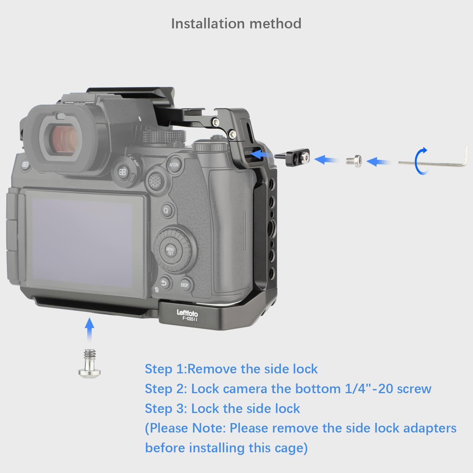 【ねじれ防止ロック設計】- 1/4インチ-20インチのネジとサイドロックアダプターを使用して、カメラを所定の位置にロックします。ラバーパッドがカメラ本体を傷から保護しながら、偶発的な動きを防ぎます(注意:このケージを取り付ける前にサイドロックアダプターを取り外してください)。