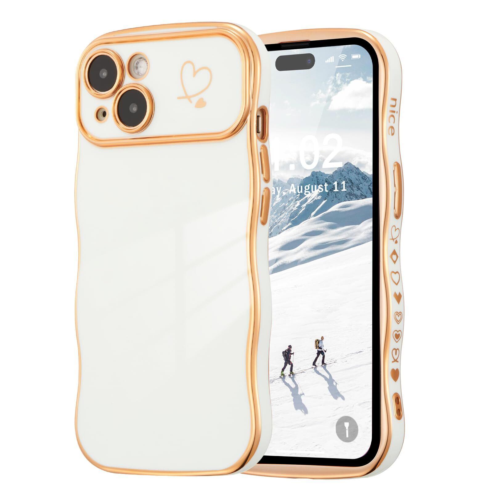 ZTOFERA iPhone 13 用 ハートケース 人気 おしゃれ iPhone 13 波型ケース 柔軟な TPU シリコン ウェーブ デザイン スマホケース メッキ加工 ソフト 軽量 耐衝撃 韓国 可愛い アイフォン 13 ケース 女子 女性 携帯電話カバー ワイヤレス充電対応 (ホワイト)