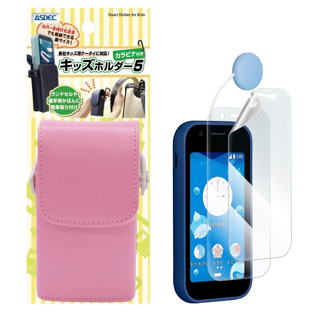 【ASDEC】mamorino6 用 セット品 2点(ケース、保護フィルム)キッズホルダー5 フラミンゴピンク/SH-KM5FP-KF-SHF35