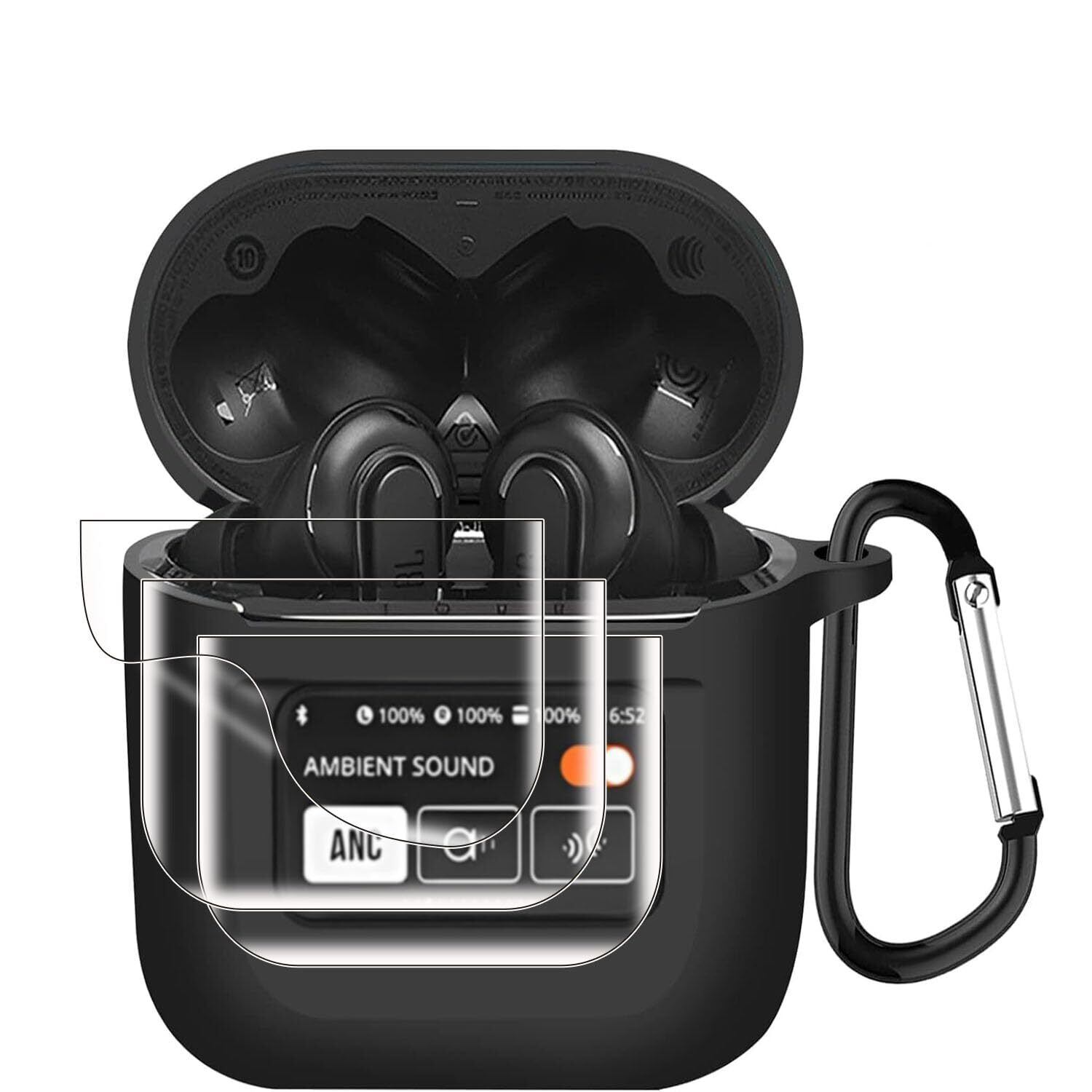 JBL TOUR PRO 2 ケースカバー シリコン製 装着充電可能 全面保護 落下・キズ防止 軽量小型 カラビナ付き【JBL TOUR PRO 2フィルム*3 付き】 (黒)