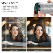 【ショットを多様に向上させる】UVフィルターはレンズを埃や傷から守ります。CPLフィルターは非金属表面の反射を除去し、コントラストと彩度を高め、ディテールを強調します。ND4フィルターはカメラに入る光を2段階減らし、曇りの日にモーションブラーで動きを捉えるのに最適です。