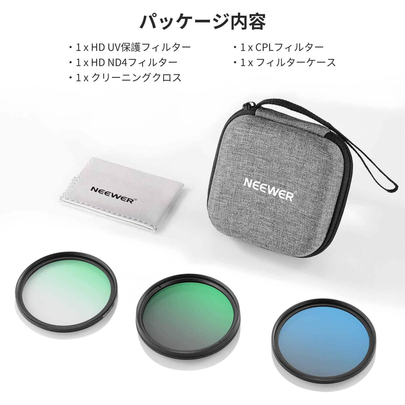 NEEWER 62mm UV/CPL/NDレンズフィルターキット ハードシェル収納ケース マルチコート光学ガラス アルミ合金製フレーム UV + 円偏光子 (CPL) + 中性密度 (ND4) フィルター 62mmカメラレンズに対応