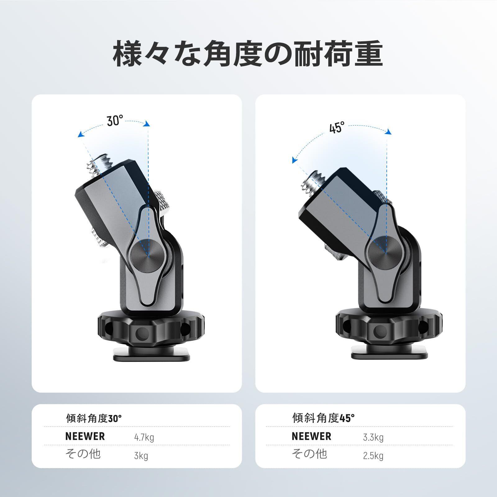 NEEWER カメラモニターマウント 2個 360°回転 180°チルト 調整可能なダンピング コールドシュー/ねじれ防止1/4"ネジ付き 5イン~7インチフィールドモニター用 コンパチブル Ninja V MA006