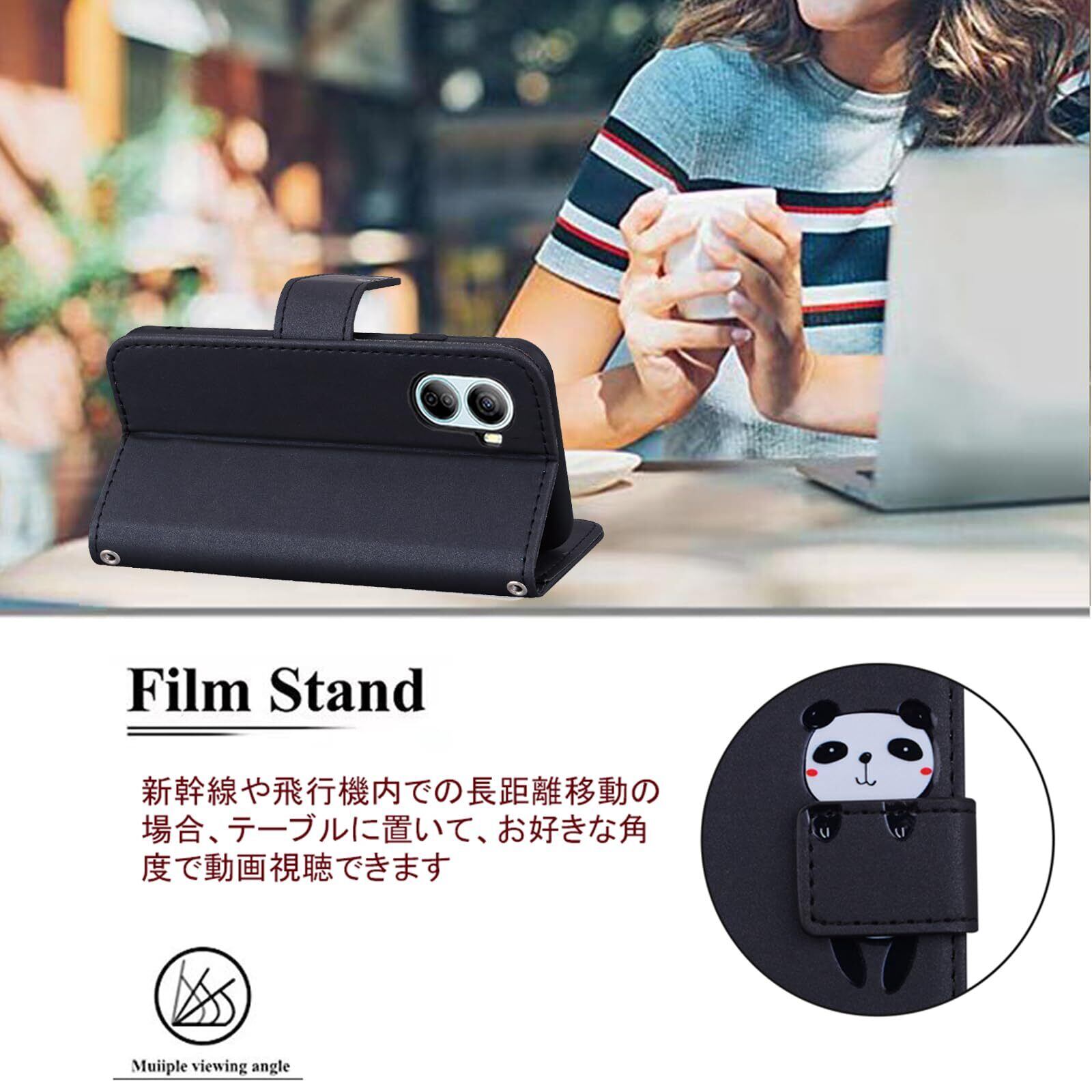 ❹【スマイルパンダちゃんのデザインと上質な素材】型押しの可愛い猫のモチーフと上品なレザーの組み合わせるケースであり、高級感ある色合いでちょっぴり大人なスマホケース。裏側ケースはソフトのtpuで仕上げられて、着脱も便利です。