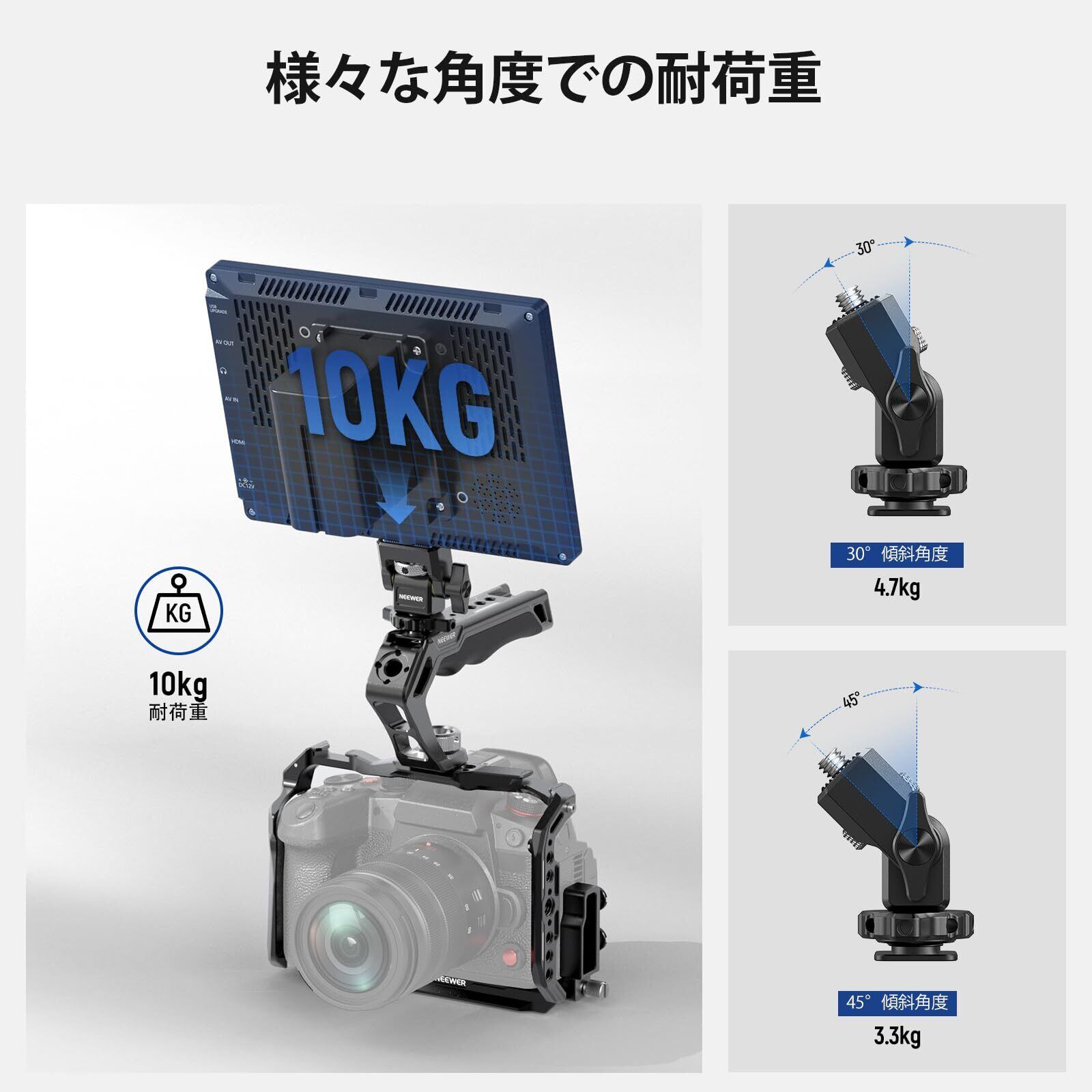 NEEWER CA007トップハンドル+MA006モニターマウント カメラケージハンドル 3/8"ARRI位置決め+コールドシュー付き 180°チルトダンピング付き 5"/7"フィールドモニター用 コンパチブル Ninja V