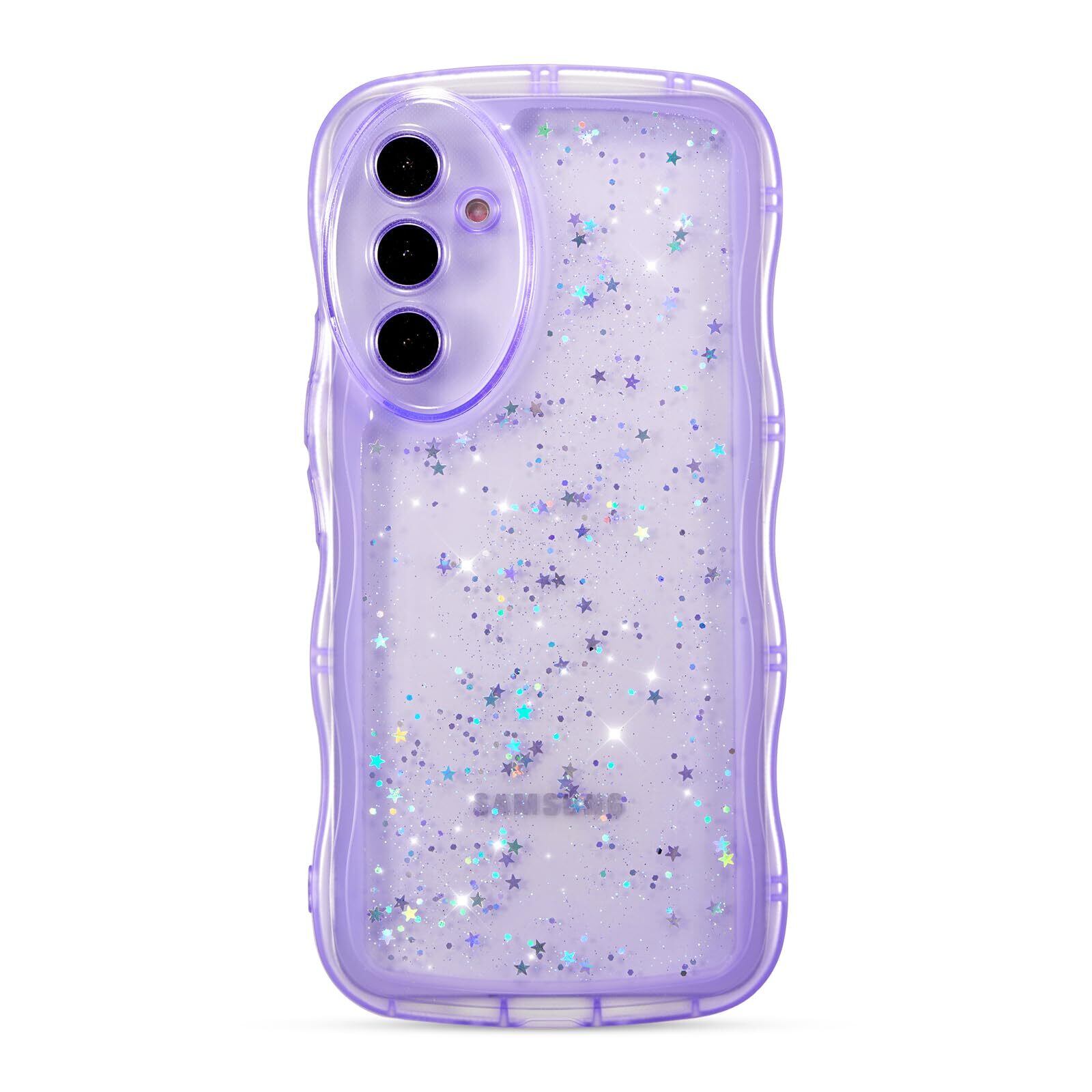 ZTOFERA Samsung Galaxy A54 5G 用波状のケース 透明 クリアケース Galaxy A54 5G ウェーブケース 可愛い おしゃれ キラキラ 星 スマホケース ソフトTPU バンパーケース スターパターン 軽量 耐衝撃 人気 韓国 サムスン ギャラクシー A54 5G ケース 女子 女性 携帯電話カバー (パープル)