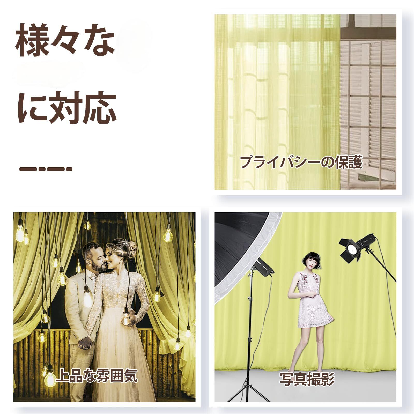 EMART 背景布 2点 背景カーテン 150x300cm イエロー 結婚式用 パーティー 記念撮影 飾り DIY シフォン生地 光沢感が良い しわ防止 (ストラップ2点付き)