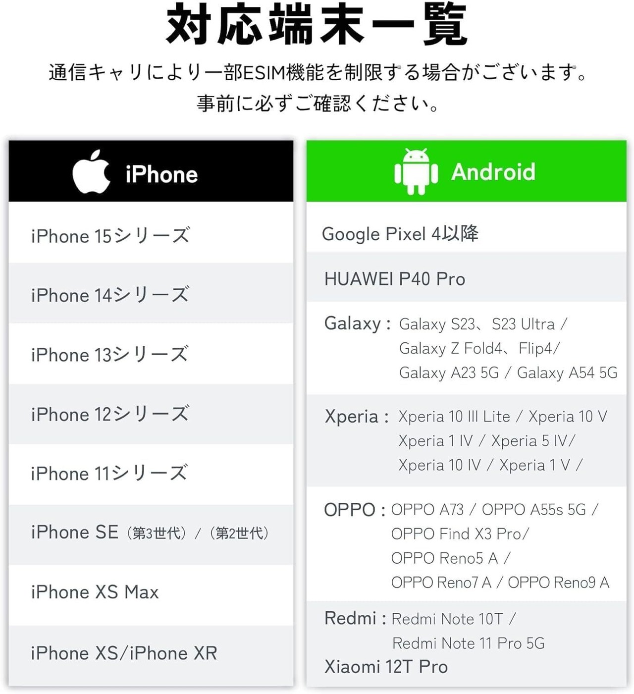 【eSIMの利用方法】必ず!注文後、専用サイトhttp://jp.www.mewfi.com/esimに必要事項を入力してください。【お急ぎの場合】は、当社のLINEカスタマーサポート(@014hhnww)にご連絡ください。eSIM(QRコード)と設定方法はメールでお送りします。通常、当日中にQRコードを発行いたします。