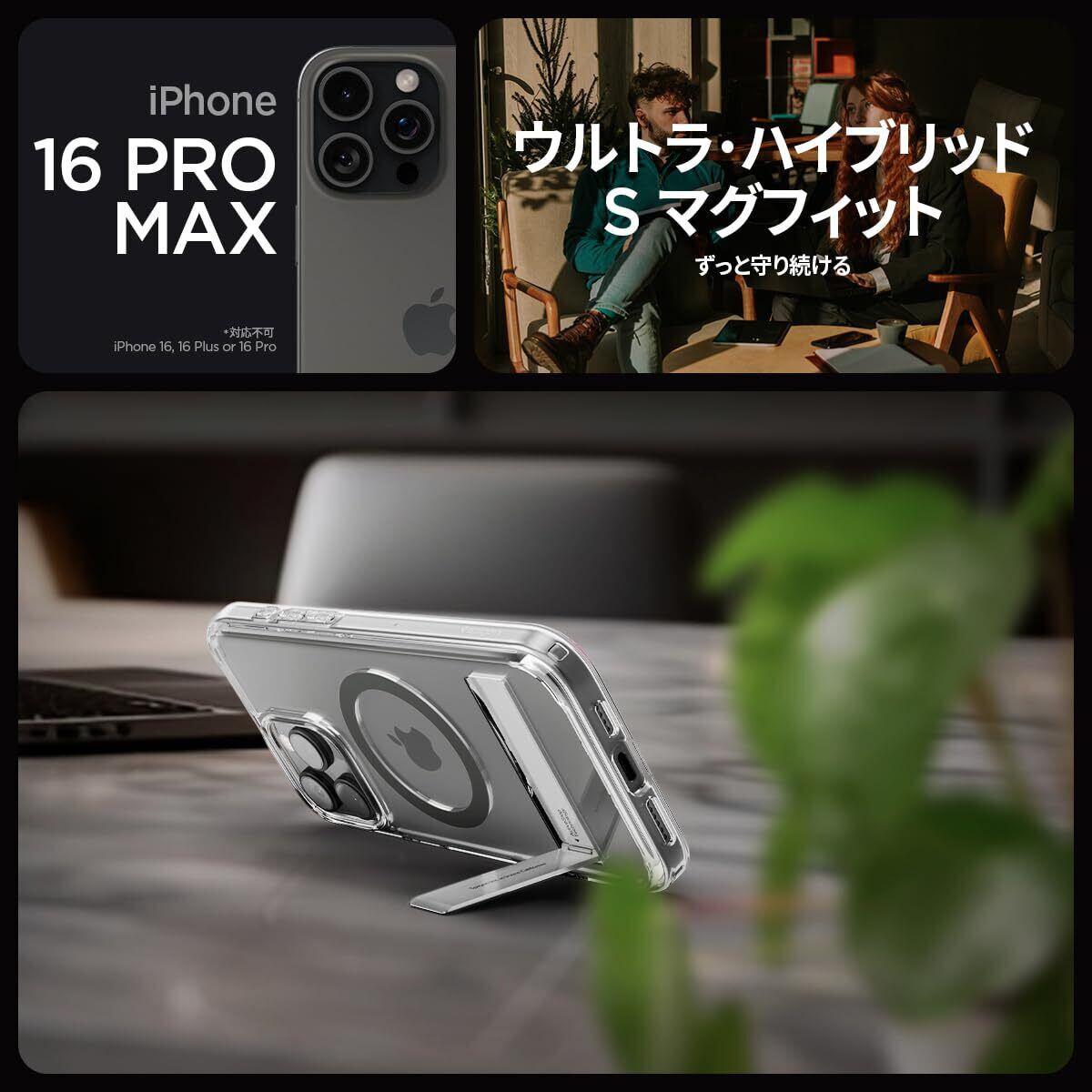 Spigen 【コンパクトなスタンド付き】iPhone 16 Pro Max ケース MagSafe対応 クリア スタンド付き 米軍MIL規格 ウルトラ・ハイブリッドS・マグフィット ACS08010 (グラファイト)