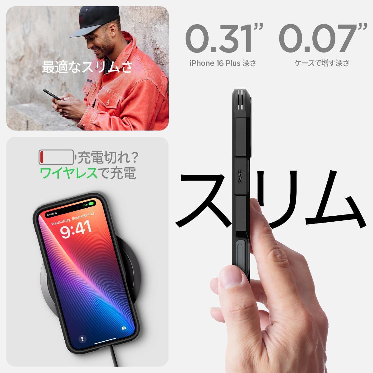 Spigen iPhone 16 Plus ケース MagSafe対応 耐衝撃 マット 2重構造 米軍MIL規格 タフ・アーマー(AI)・マグフィット ACS08085 (ブラック)
