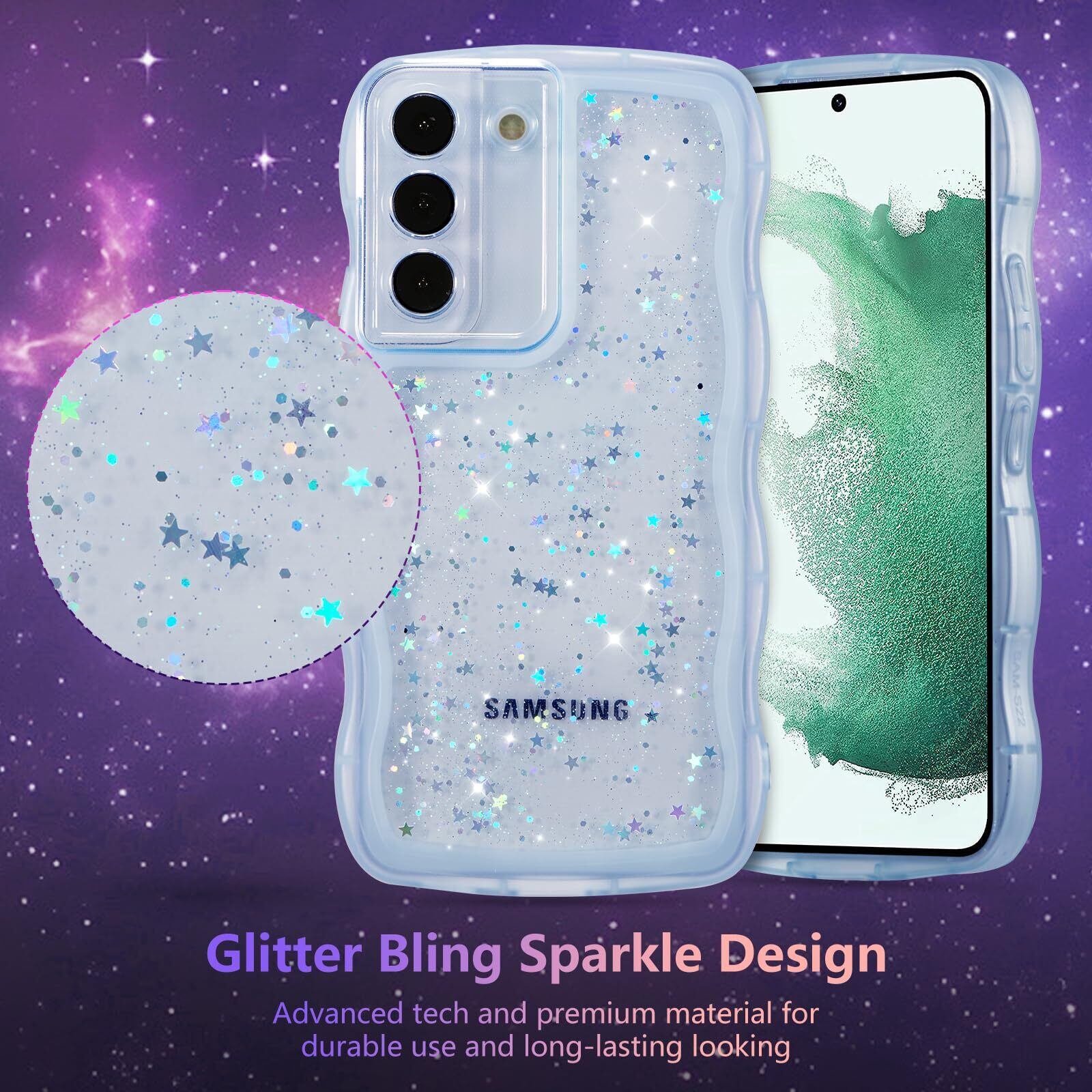 ZTOFERA Samsung Galaxy S22 5G 用波状のケース 透明 クリアケース Galaxy S22 ウェーブケース 可愛い おしゃれ キラキラ 星 スマホケース ソフトTPU バンパーケース スターパターン 軽量 耐衝撃 人気 韓国 サムスン ギャラクシー S22 ケース 女子 女性 携帯電話カバー (ブルー)