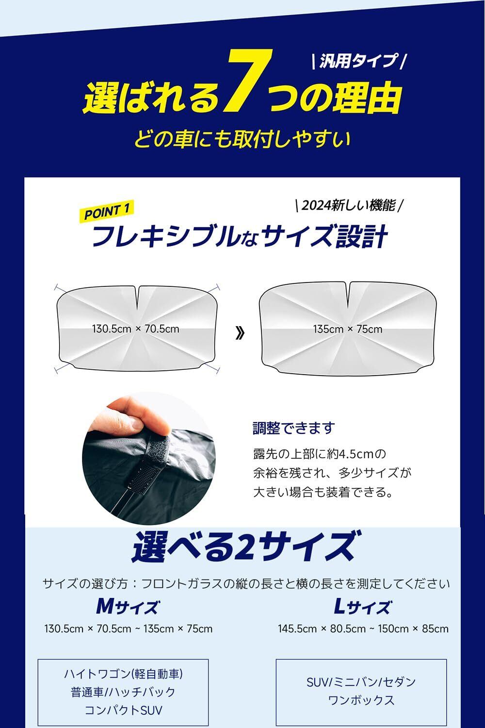 konciwa【2024新版&曲がる中棒】 サンシェード 車 フロント 傘型 車用サンシェード 折り畳み式 強力な10本骨逆折り式 車用パラソル 自動車用サンシェード バックミラー開き口 遮光 遮熱 取り付け簡単 収納便利 レザーバック付き フロントガラス 紫外線対策 遮光性よい 車中泊 仮眠 暑さ対策… (M-S(135*75cm幅の調整可能))