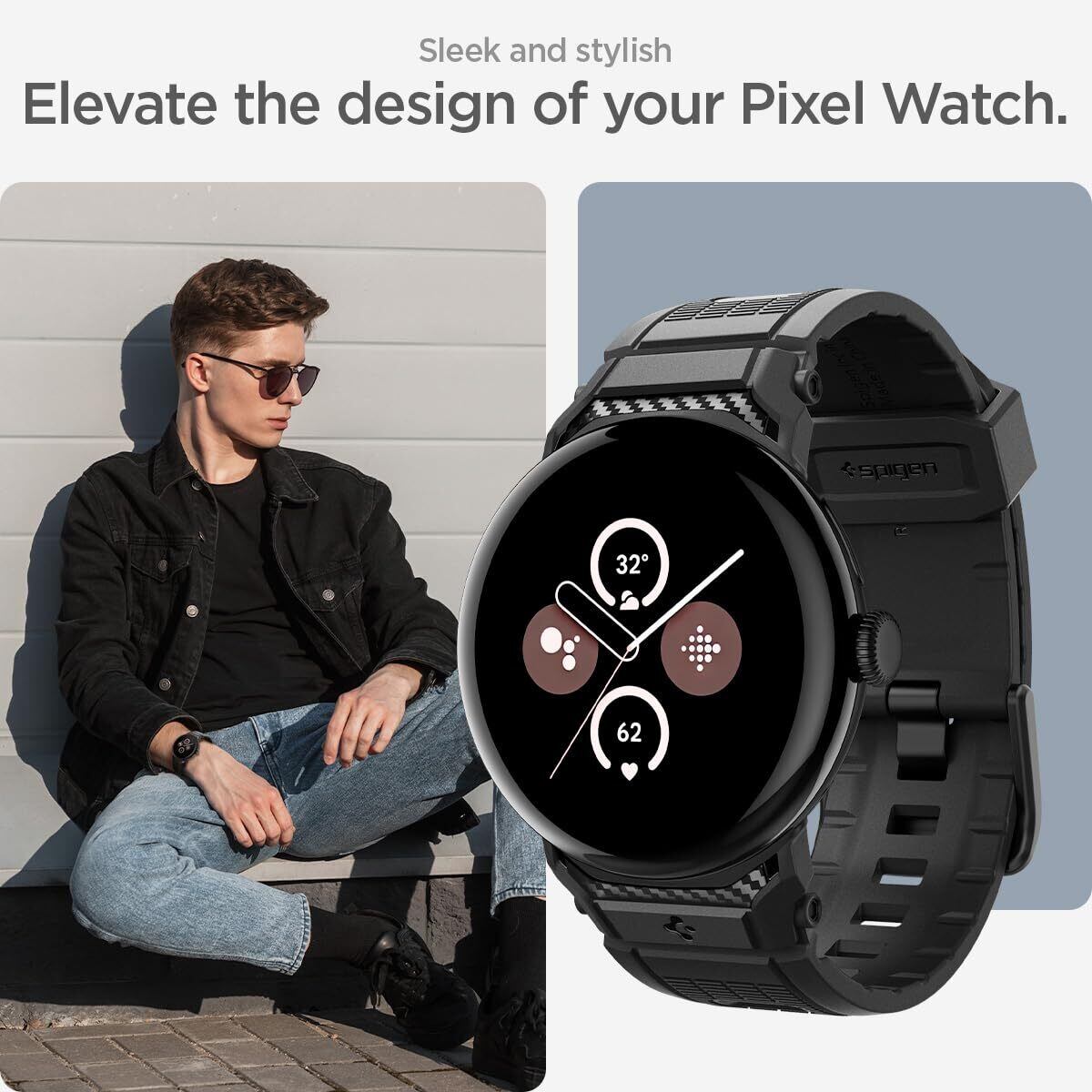 [Spigen] Pixel Watch 3 Large バンド スポーツ 長さ調整可能 簡単装着 軽量 速乾 カーボンテクスチャー マット仕上げ ラギッド・バンド AMP07600 (マット・ブラック)
