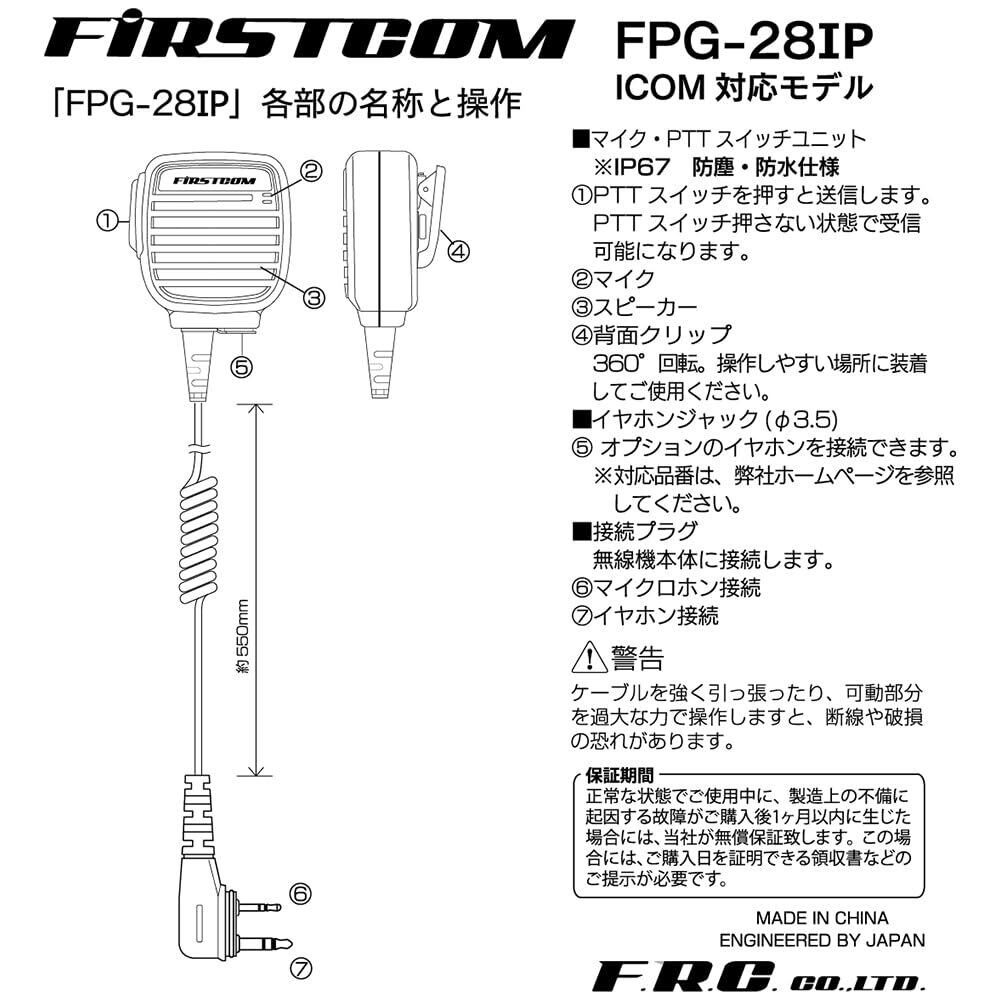 F.R.C. エフ・アール・シー FIRSTCOM FPG-28IP ICOM デジタル簡易無線登録局対応 スピーカーマイクロホン