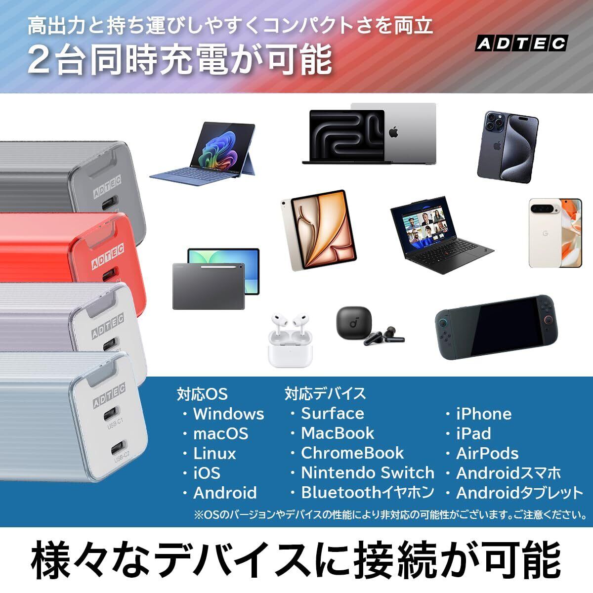 【カラフルでコンパクトな65W対応PD充電器】