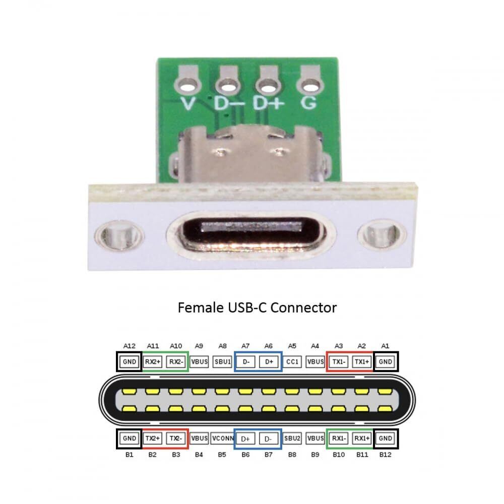 5個/セット DIY OEM タイプ C メス ソケット コネクタ パネル マウント タイプ、PC ボード 24 ピン USB 2.0 ピン配列