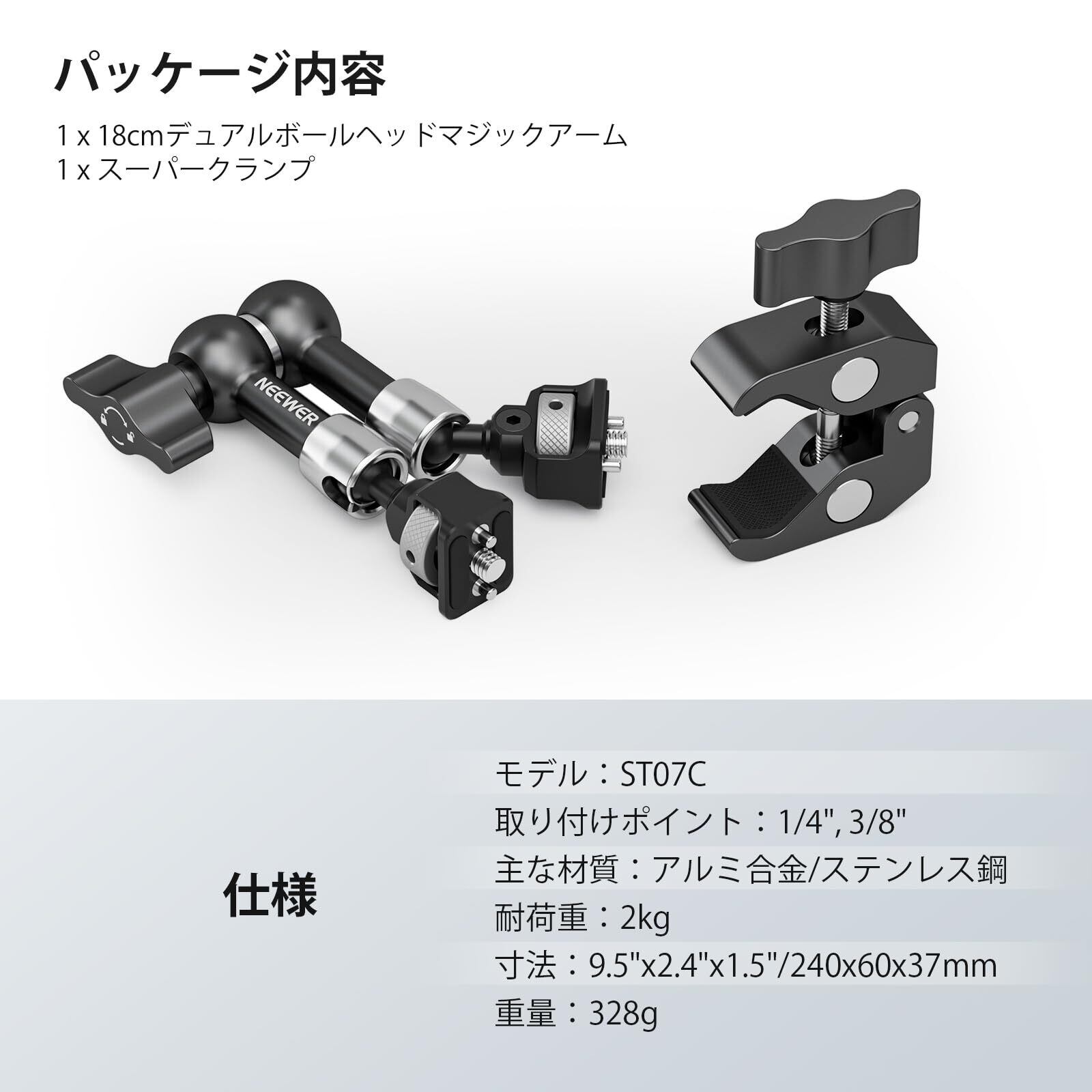 NEEWER 18cm マジックアーム クランプマウント 関節式アーム カメラモニターマウント スーパークランプ/1/4"&3/8"ARRI位置決めピンと穴付き DSLR/アクションカメラ/ビデオライト用 ST07C