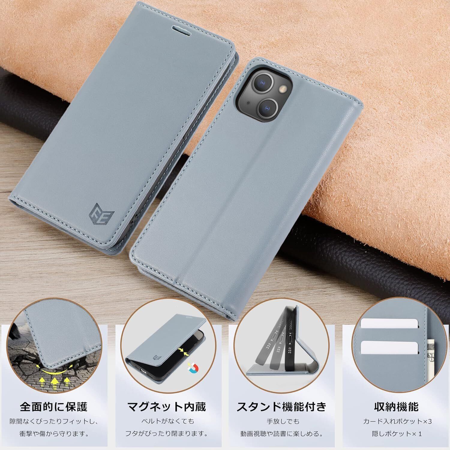 FeeY iphone13 ケース 手帳型 Iphone13 手帳 ケース 耐衝撃TPU素材カード収納 マグネット内蔵スタンド機能付き アイフォン 13携帯カバー 全面保護 iphone13 スマホケース 5G 6.1インチ対応, ライトブルー