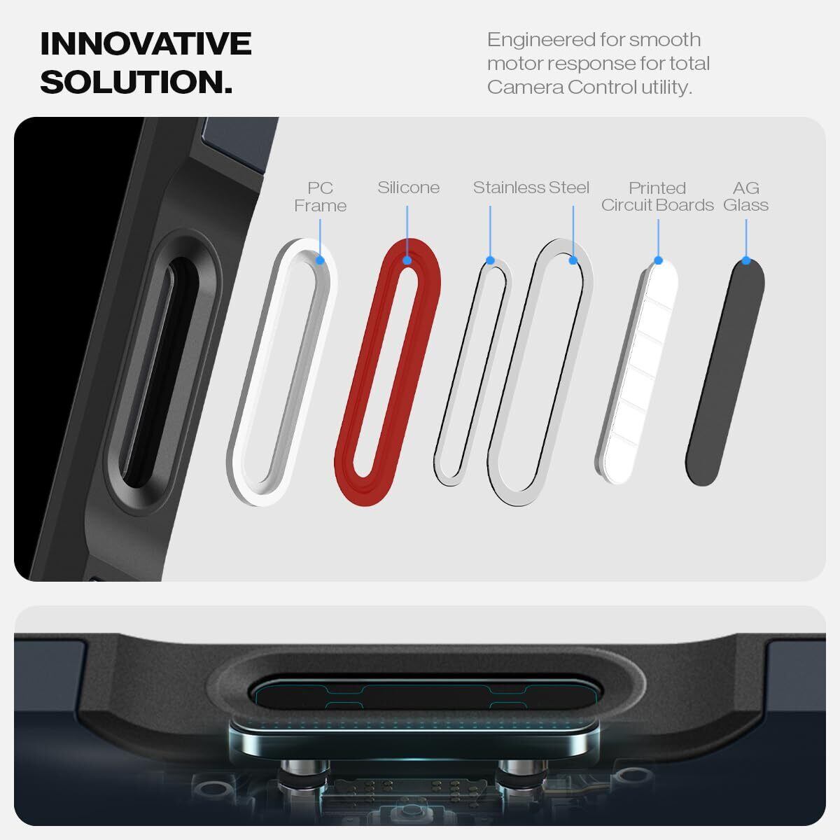 【ボタンまで完全保護】Spigenの既存の人気商品にカメラコントロールボタンをカバーする機能が追加された新ラインアップ!カバー越しでもカメラコントロール機能が楽しめます。