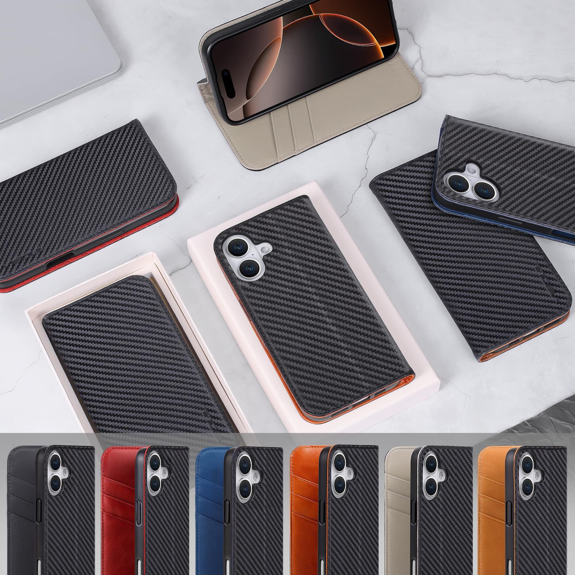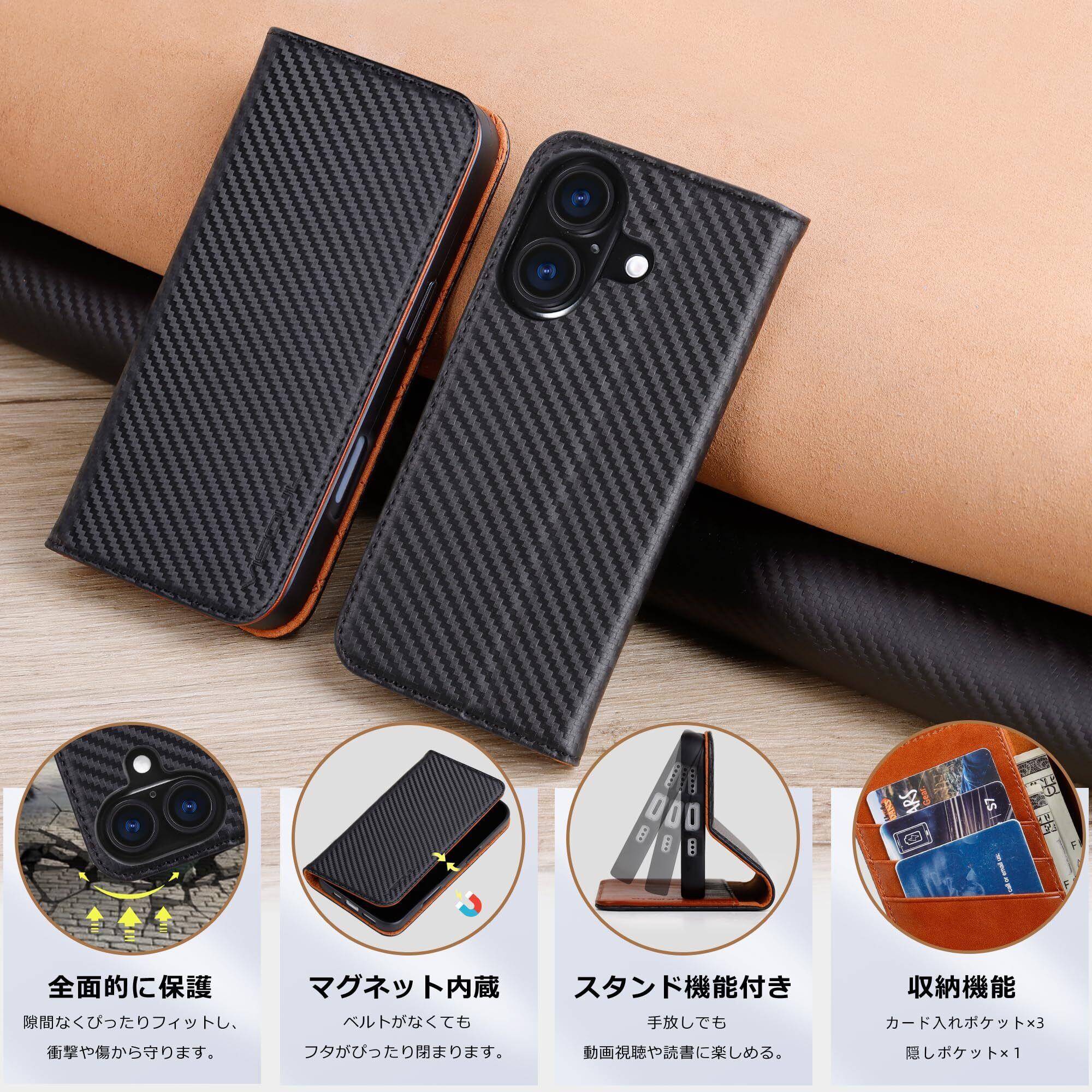 VISOUL iPhone16 対応ケース 手帳型 本革 レザーアイフォン16 手帳型ケース MagSafe対応 アイホン16ケース 横置きスタンド機能付き スマホケース カード収納 携帯ケース 全面保護 マグネット 柔軟なTPU素材 あいふぉん16 アイフォン16 カーボンレザー ブラウン