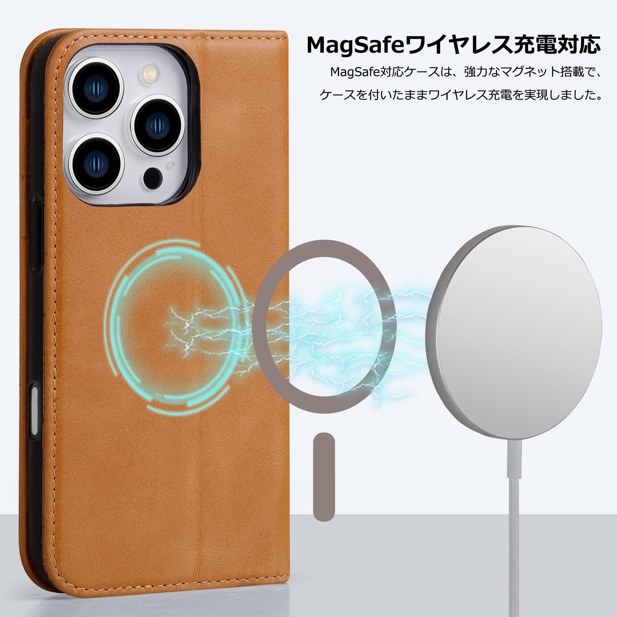 【マグネット内蔵・iPhone16Pro対応本革手帳型ケース】背面だけでなく、画面を覆っているため、画面から直接地面に落ちる場合は、スマホの画面を保護してくれるので安心といったイメージがあります。カバーの面積が広くなり、カバーの外側や内側を有効利用できる点も手帳型の魅力の1つです。マグネットが内蔵されているので、ベルトがなくてもフタがピタッと閉まります。シンプルなタイプで留め具がなく、撮影モードでも邪魔しません。【耐衝撃に強いTPU素材カバー 】カバー部分は軽量と耐衝撃を兼ね備えるTPU素材を採用して柔らかいTPUカバーは取り付け・取り外しが簡単で、スマホ本体への損傷の心配ありません。