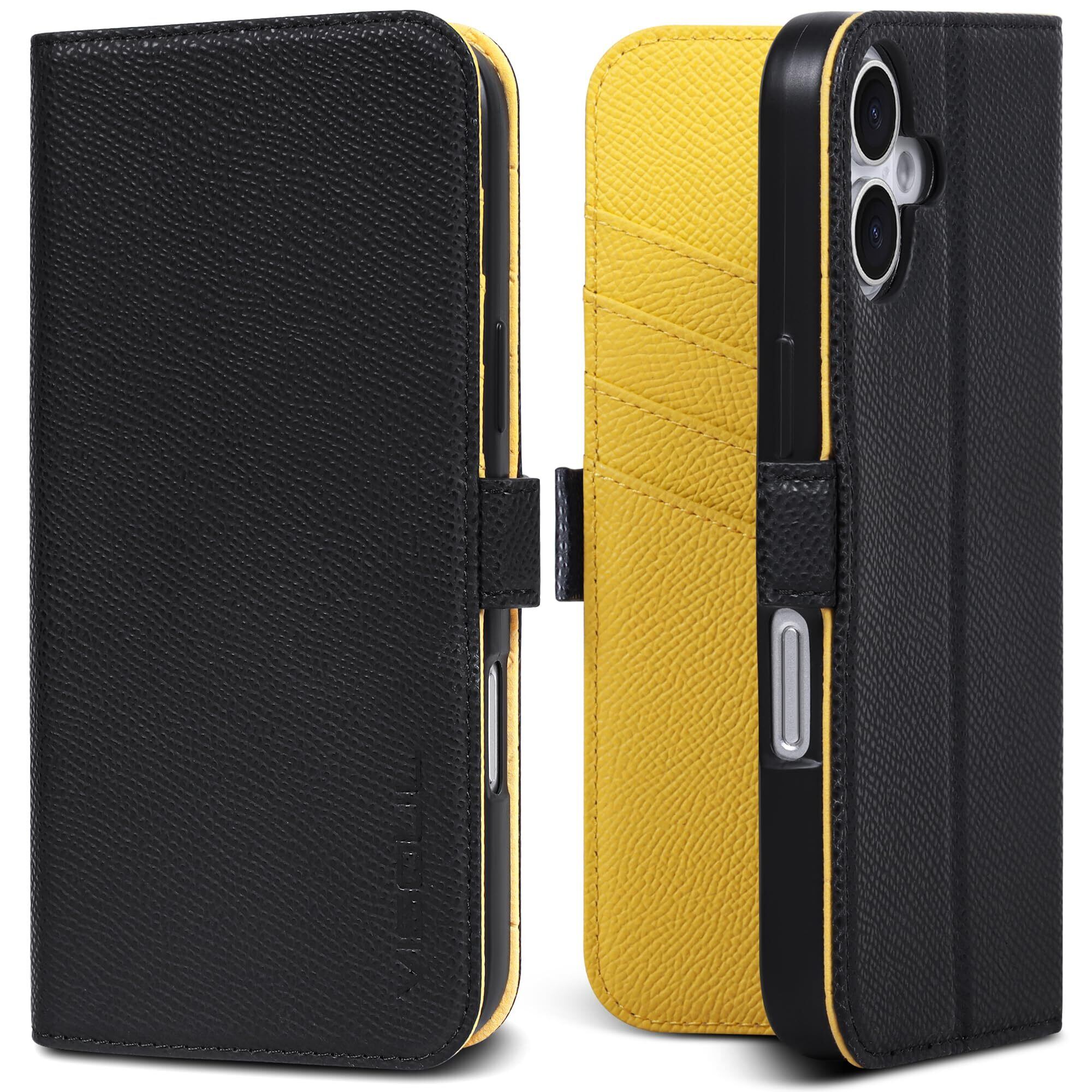VISOUL iPhone16Plus 対応ケース 手帳型 本革 アイフォン16プラス 手帳ケース レザー MagSafe対応 サイドマグネット型 携帯ケース 横置きスタンドスマホケース カード収納 全面保護 柔軟なTPU素材 アイホン16Plus レモン