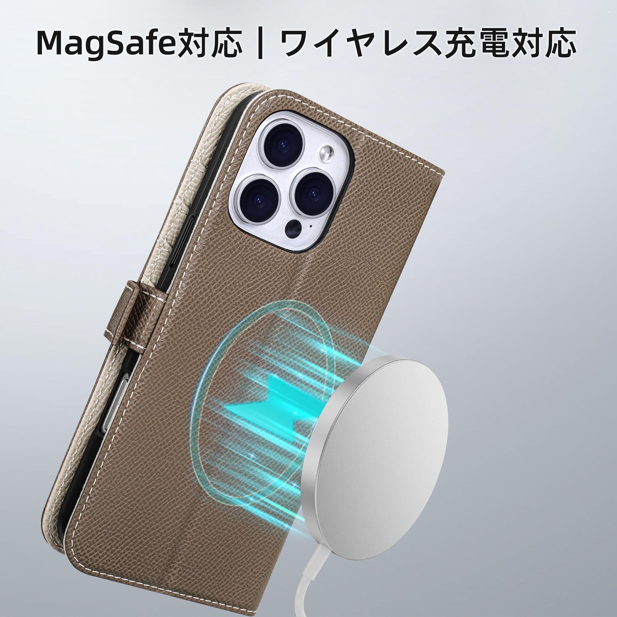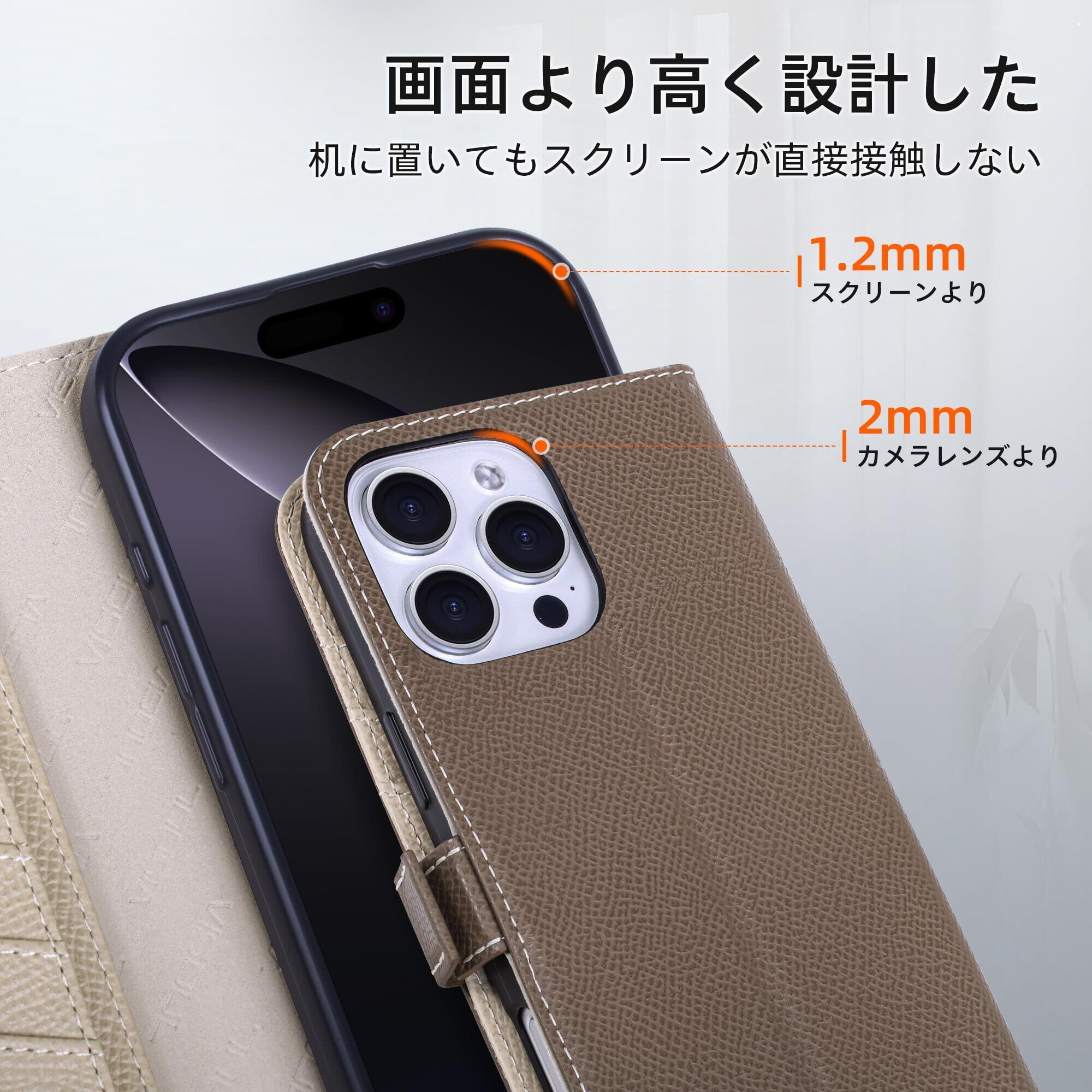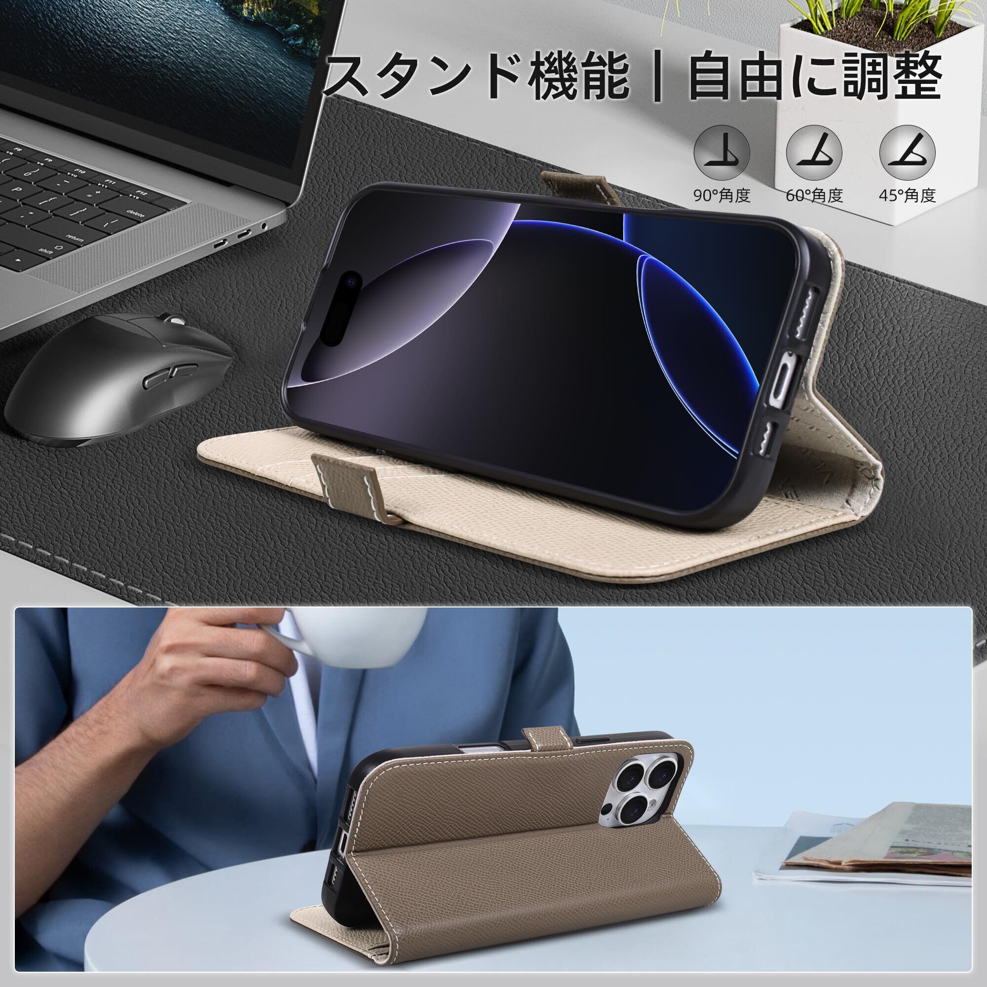 VISOUL iPhone16Pro 対応ケース 手帳型 本革 アイフォン16プロ 手帳型ケース MagSafe対応 スマホケース サイドマグネット型 携帯ケース レザーケース 横置きスタンド 全面保護 柔軟なTPU素材 アイホン16 Pro ブラウン グレー