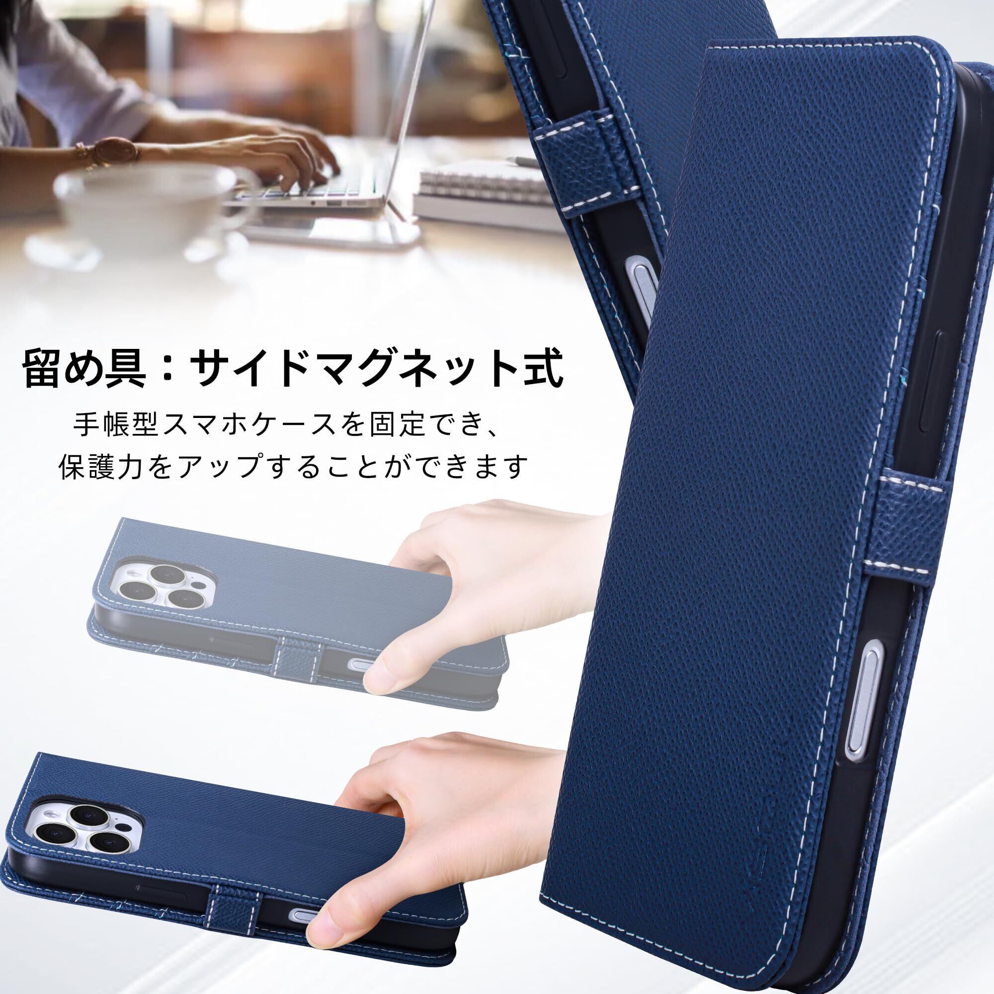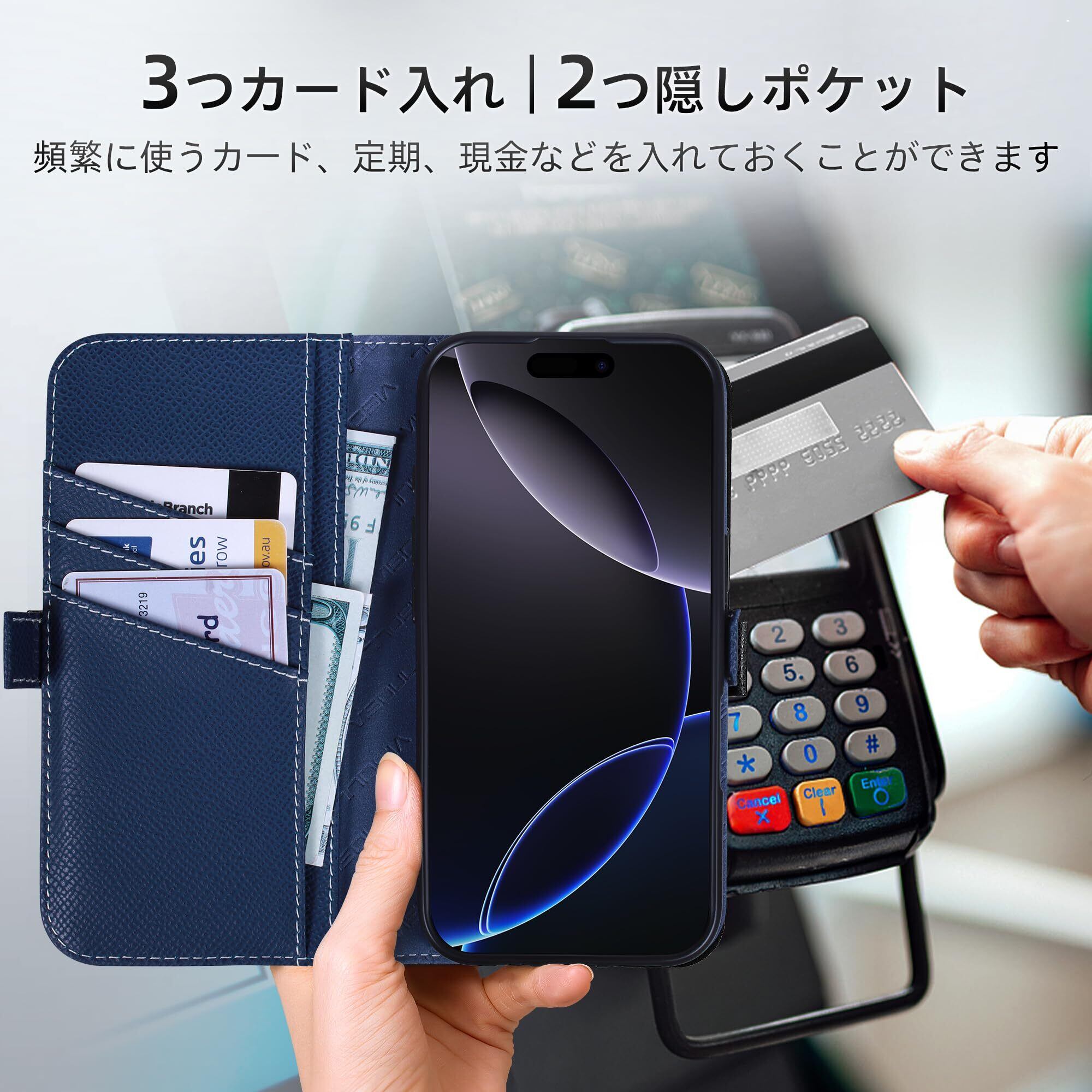 VISOUL iPhone16Pro 対応ケース 手帳型 本革 アイフォン16プロ 手帳型ケース MagSafe対応 スマホケース サイドマグネット型 携帯ケース iphone16 Pro レザーケース 横置きスタンド カード収納 全面保護 柔軟なTPU素材 アイホン16 Pro ネイビー