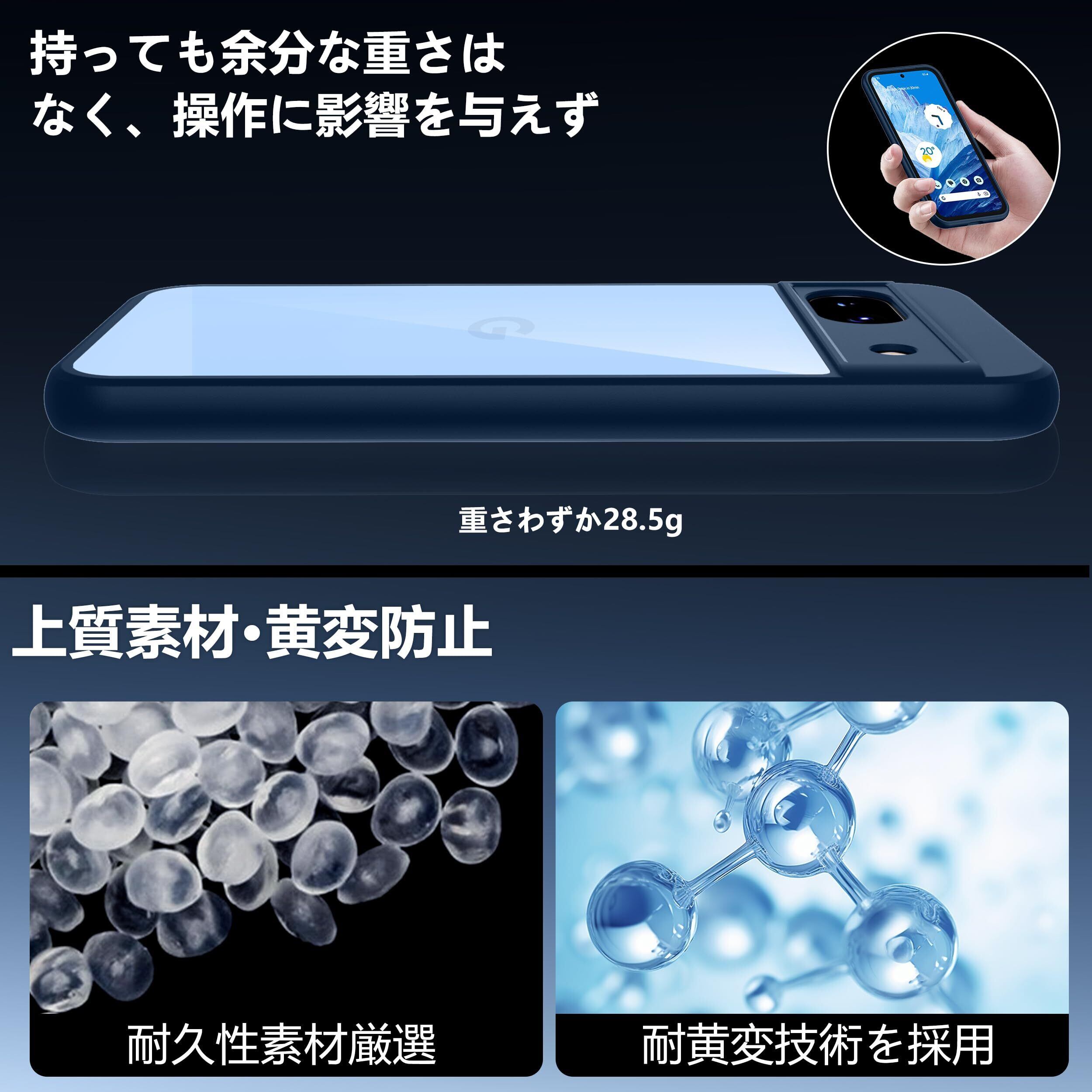 Google Pixel 8a ケース ブルー 黄変防止 グーグルピクセル8a ケース 耐衝撃 ガラスフイルム保護付き 指紋防止 落下防止 耐久性 ストラップホール付 薄型 軽量 ソフトカバー ワイヤレス充電対応 googleピクセル8a