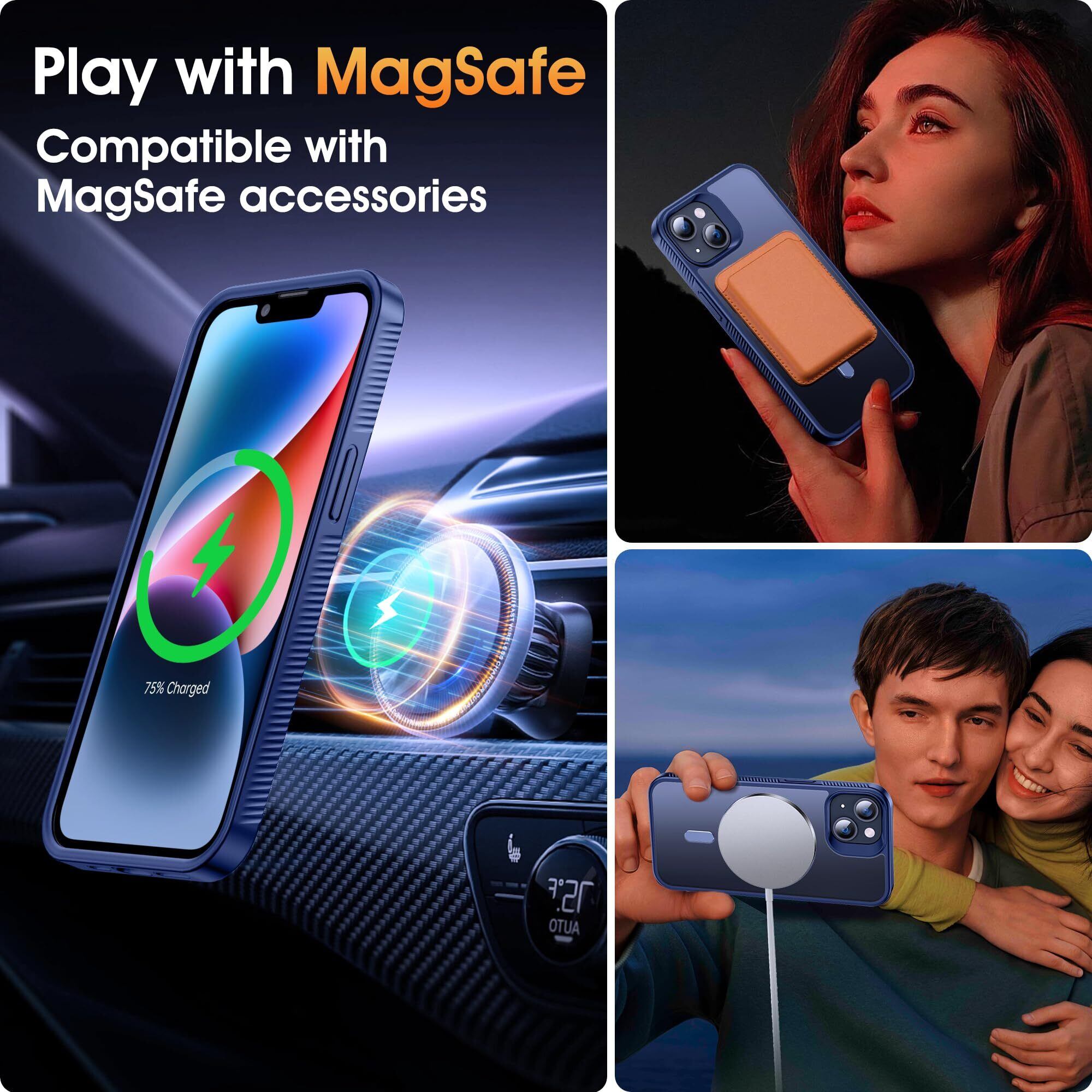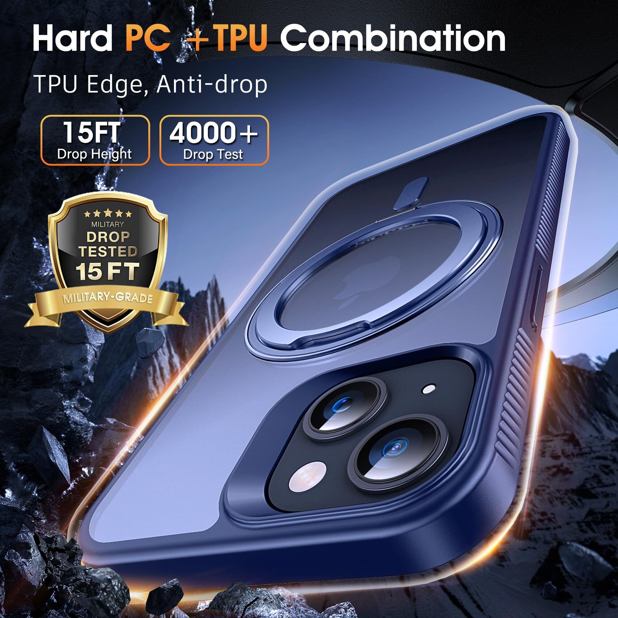 Supdeal iPhone 13/14 用 ケース magsafe対応 半透明 スクラブ カバー360°回転スタンド 耐衝撃 米軍MIL規格 滑り止め 指紋防止 ワイヤレス充電 アイフォン 13/14 携帯電話のケース 6.1インチ (ブルー)