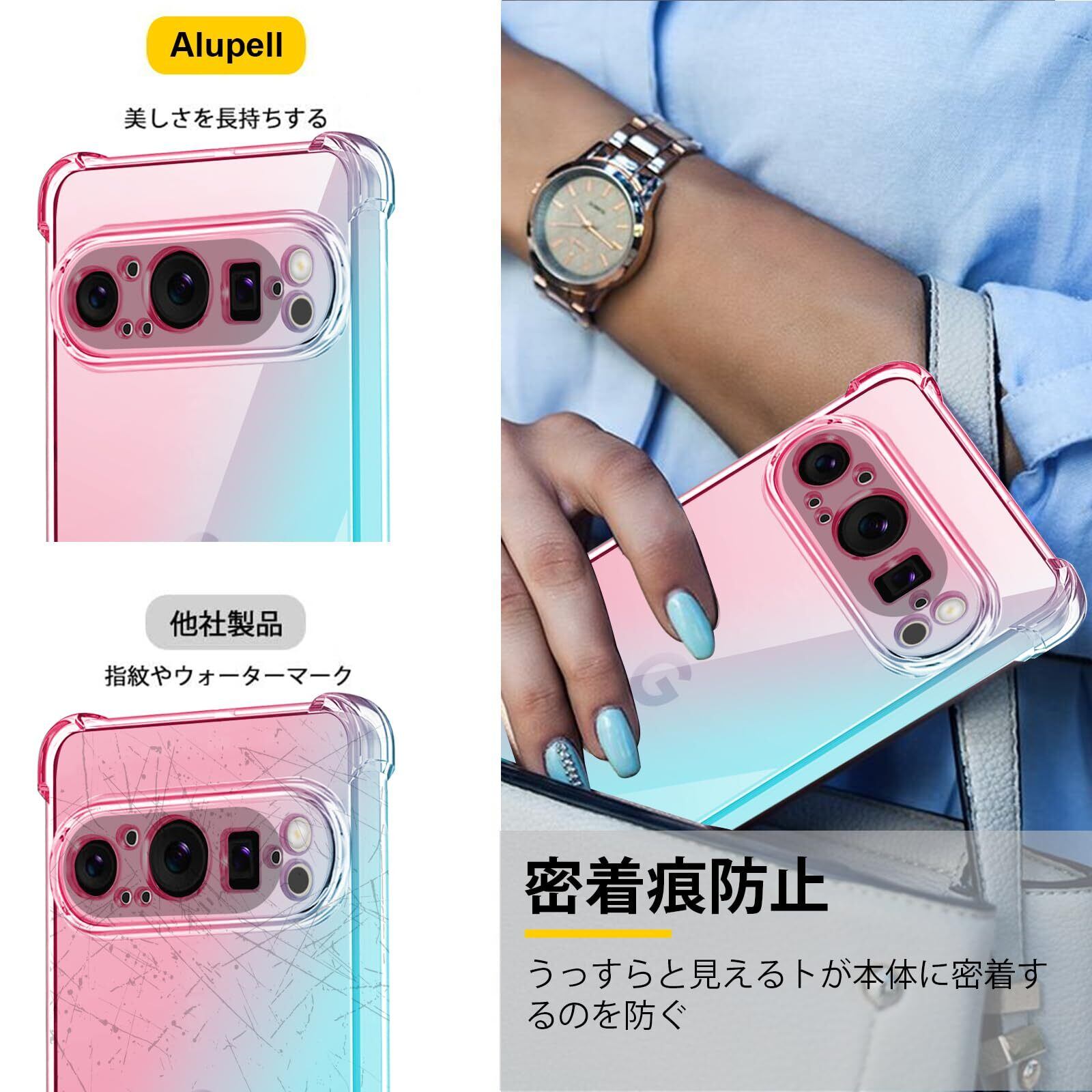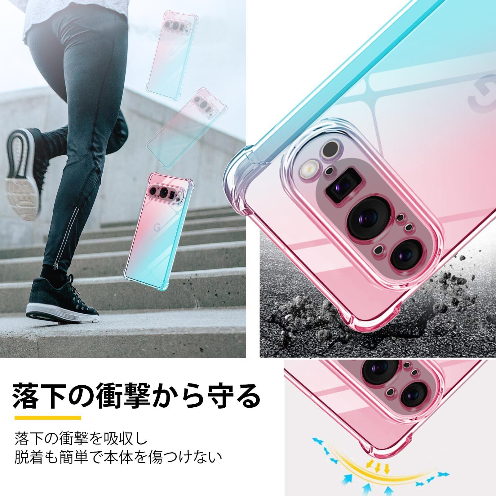 Google Pixel 9 Pro XL ケース クリア TPU 薄型 軽量 グラデーション色 ケース 耐衝撃 米軍MIL規格取得 滑り止め 黄変防止 防塵 一体型 人気 携帯カバー(ピンクグリーン)