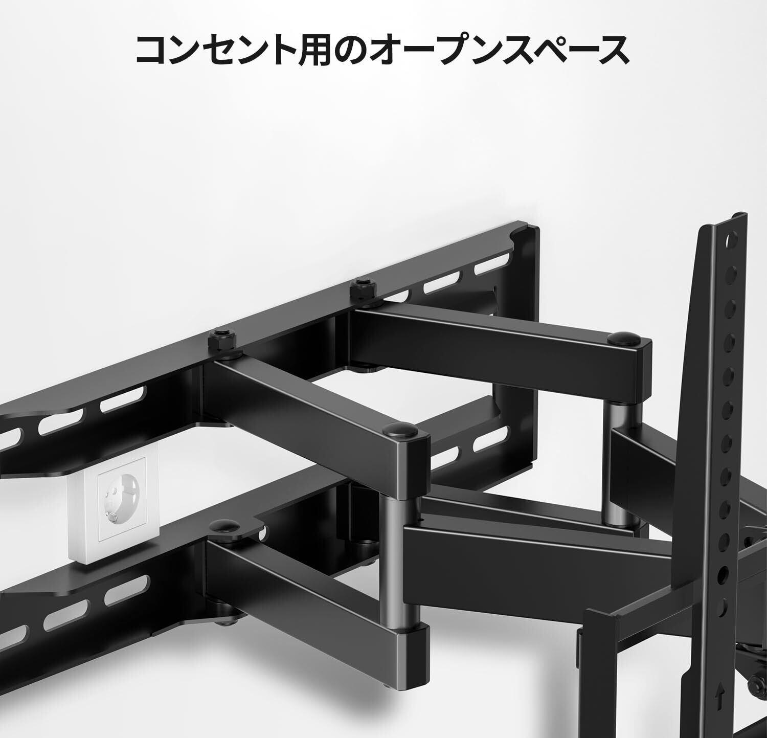 【中大型テレビ・高価なテレビに最適なデュアルアームテレビ壁掛 金具】デュアルアーム(6本のアーム)で構成されており、シングルアーム壁掛けtv金具より強力な耐荷重能力を備えています。このフルモーション壁掛け金具は45kgまで耐えることができ、アメリカUL安全テストを基準に3倍最大耐荷重試験済んで、耐震効果あり、強度抜群!26-65型のテレビに対応でき、特に50/55/60/65型の中大型テレビ/高価なテレビに強くお勧めします。又、テレビVESA規格は75*75mm,100x100mmから400x400mmまで幅広く対応します。