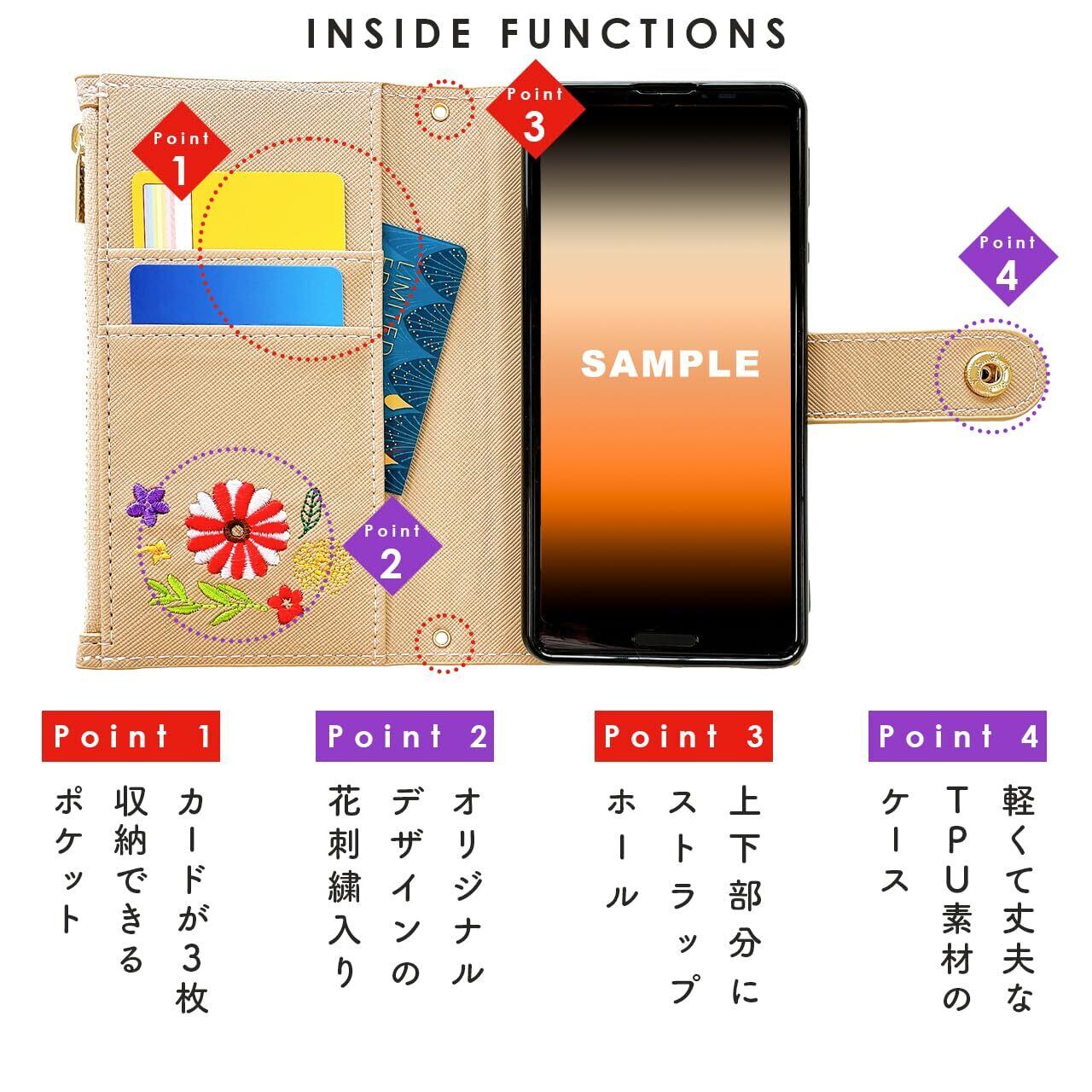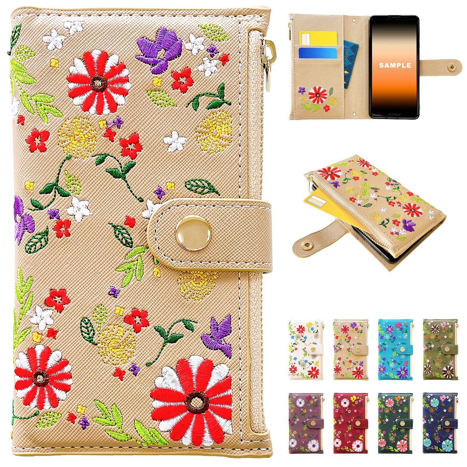 AQUOS wish4 SH-52E A402SH SH-M27 用 ケース 手帳型 カバー 手帳型ケース SH52E SH-52Eケース SH-52Eカバー A402SHケース A402SHカバー スマホケース スマホカバー おしゃれ花刺繍 ベージュ